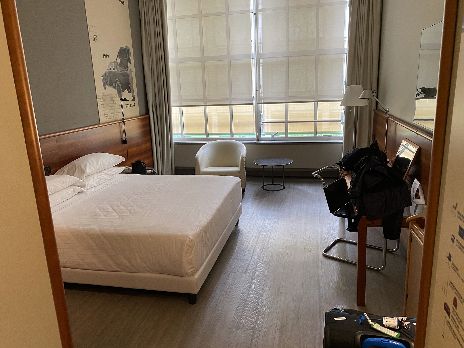 Our room with a very modern look. The building is a converted Fiat factory that was repurposed