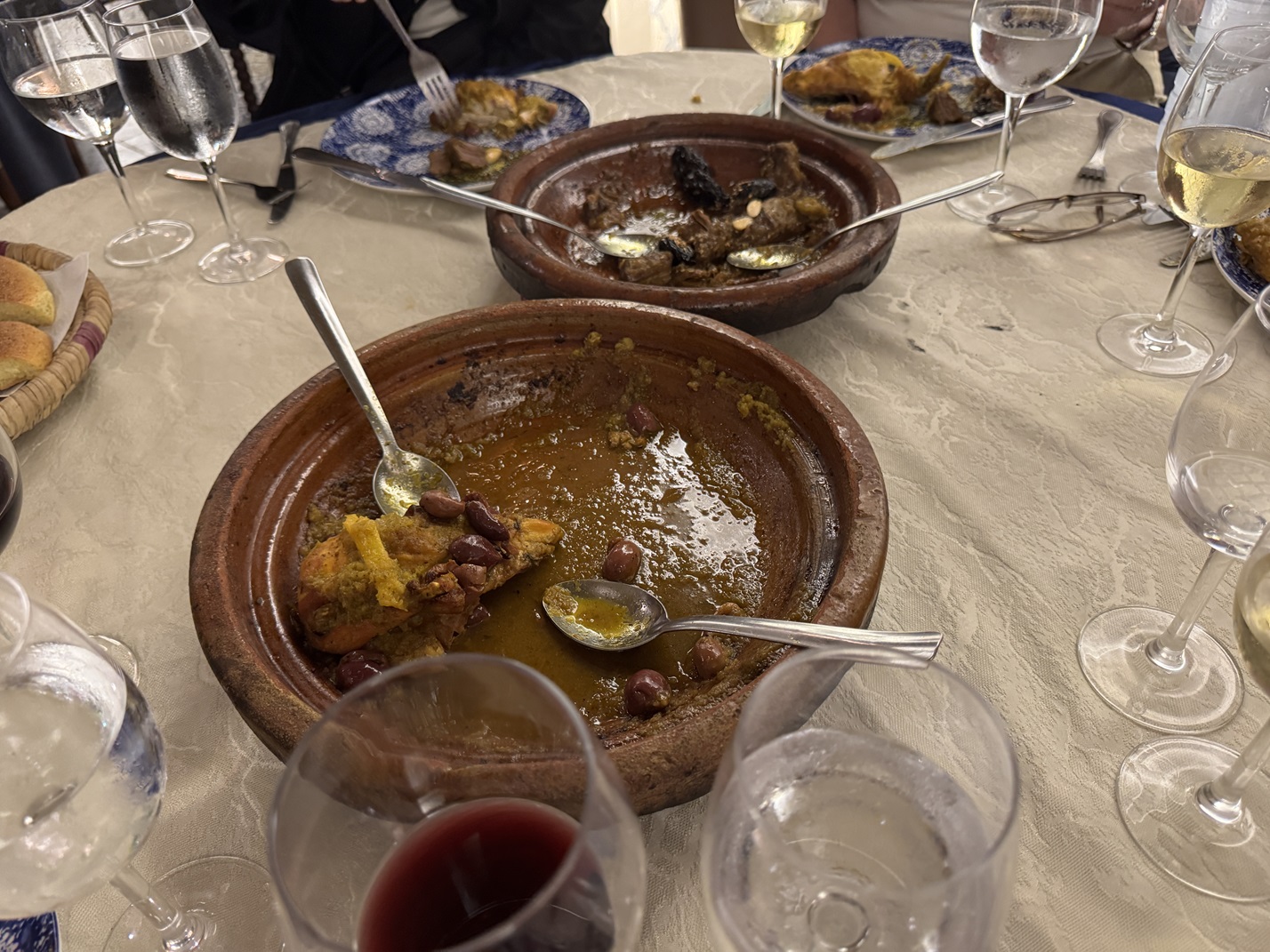 We head off to our welcome dinner, the main courses being tagines cooked in these special dishes.