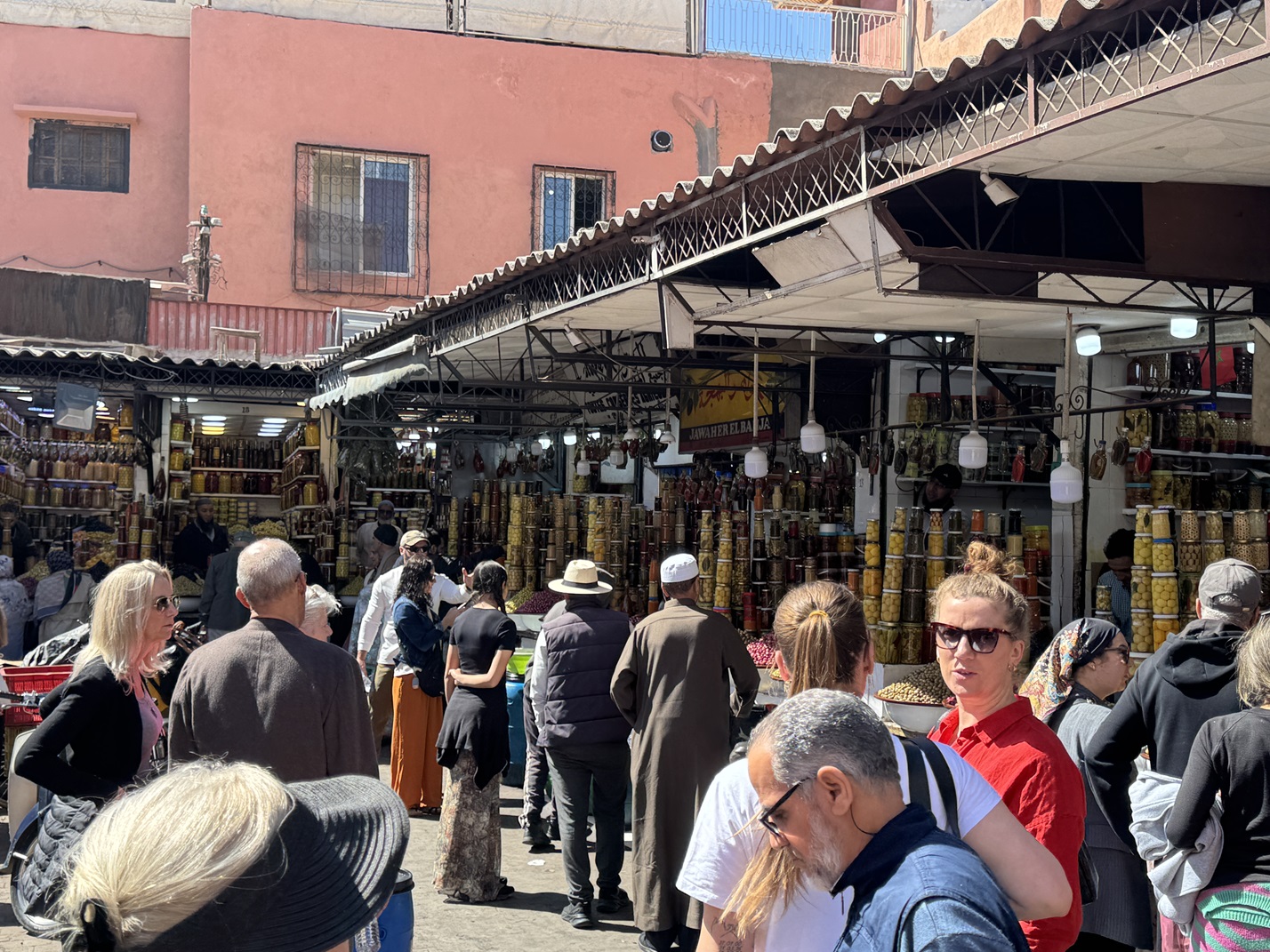 This open area is used for auctions. On the right are olives, preserved lemons, etc.