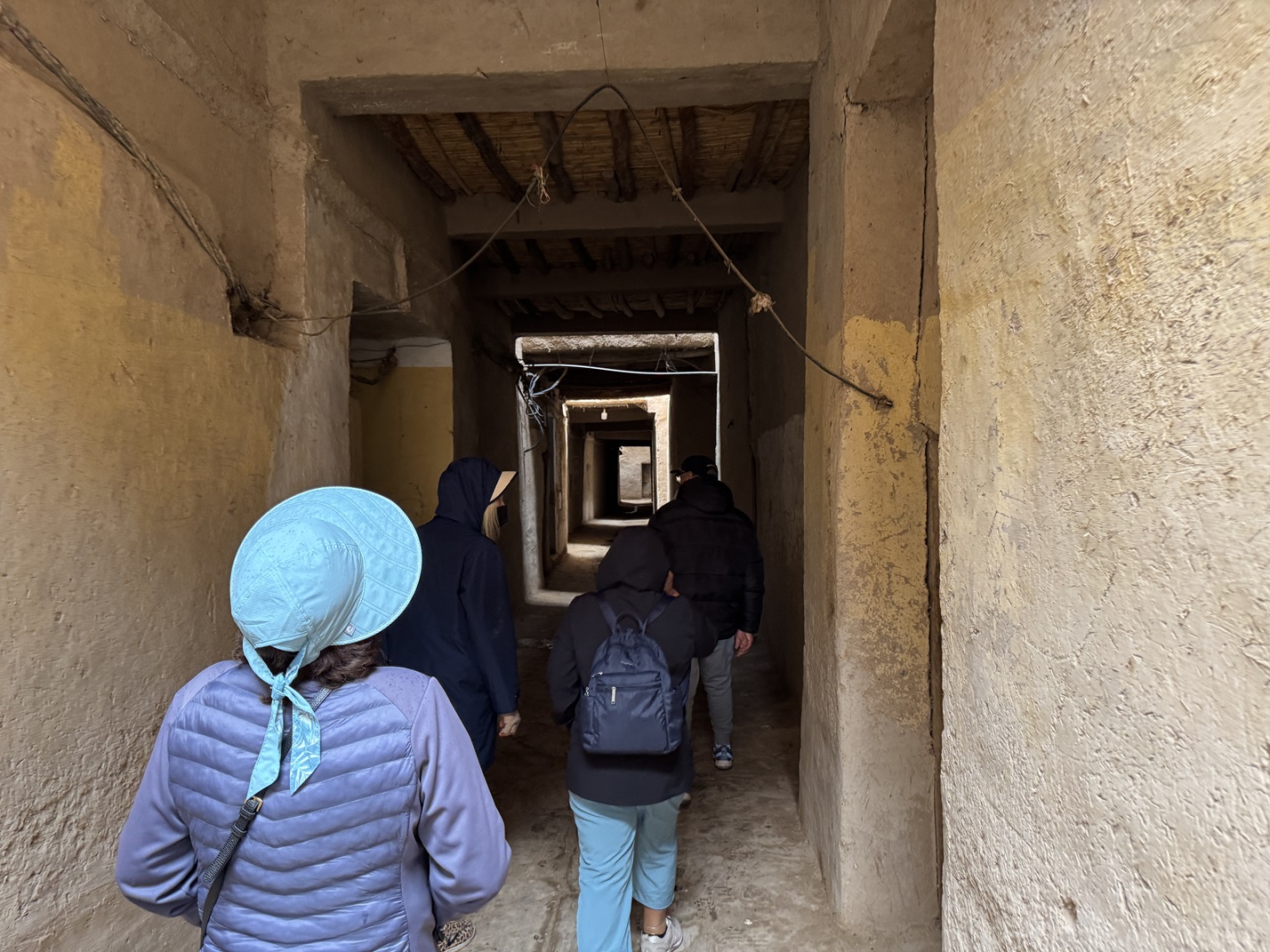 Driss shows how the doorways have the large door and the smaller door, for controlling heating and cooling.