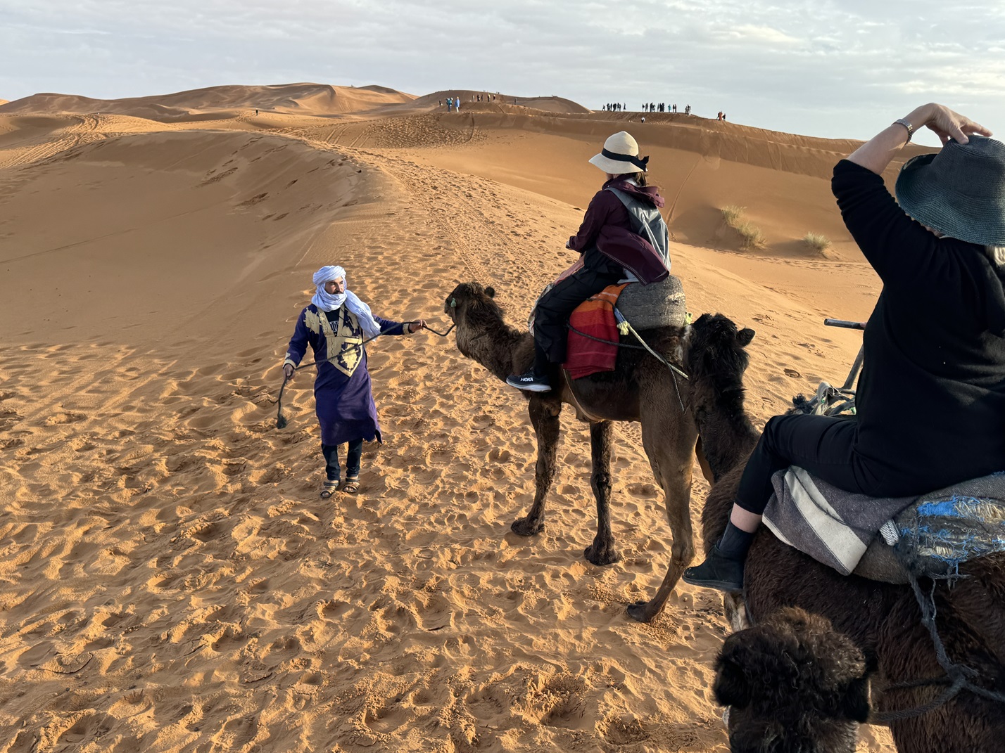 Our guides lead out trains of the camels about 1/4 mile into the dunes.