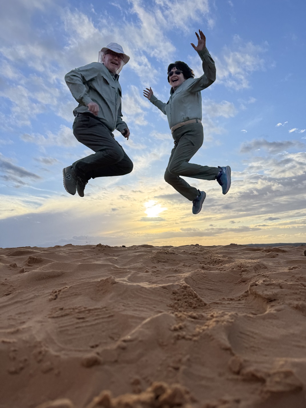 Our local guide took a cool picture of us jumping over the setting sun.