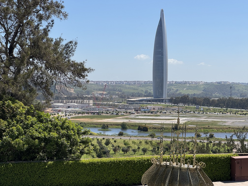 The skyline is dominated by the Mohammed VI Tower at 55 stories.