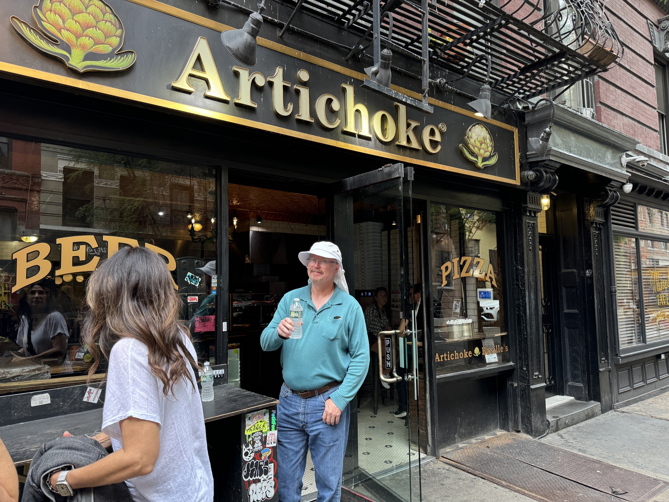 First stop is Artichoke Pizza, and the guy in the center is our excellent guide, Adam.