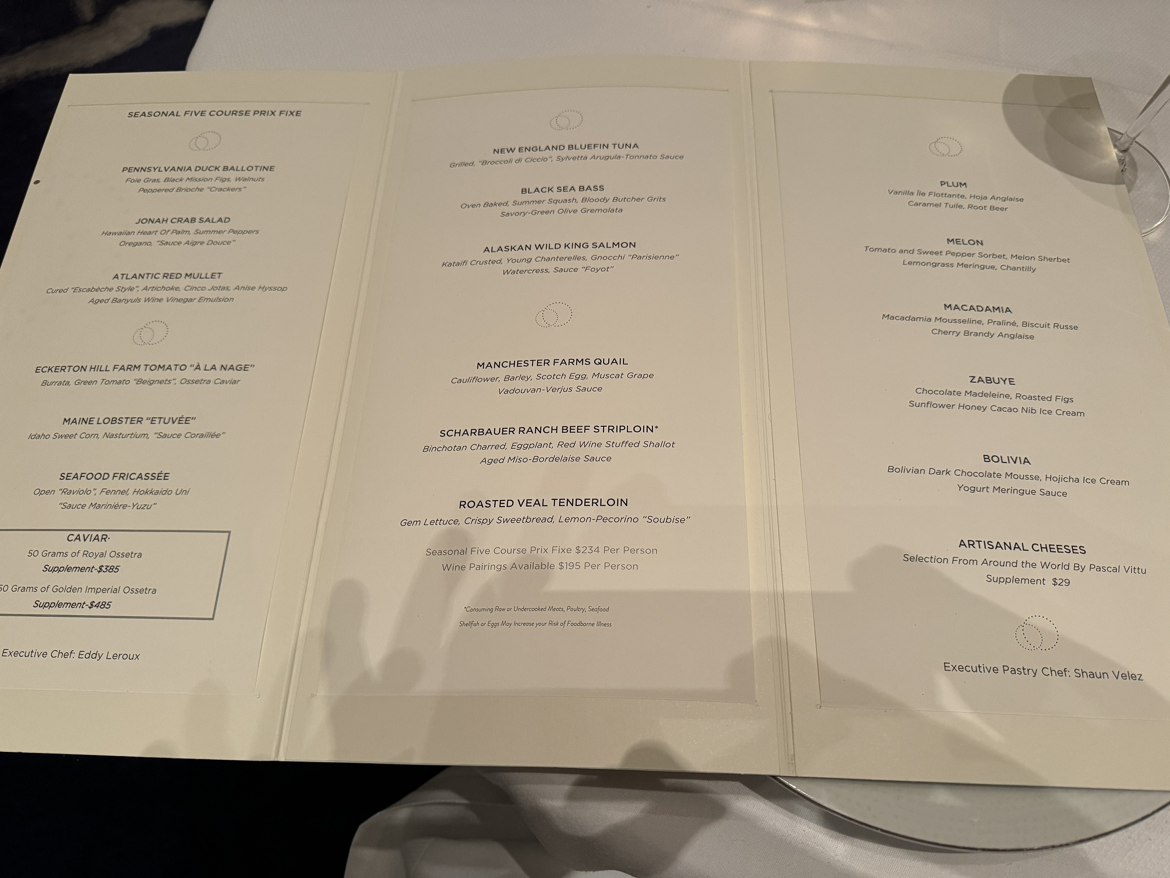Daniel features a nine-course tasting menu that is set, or a five-course tasting menu where you
