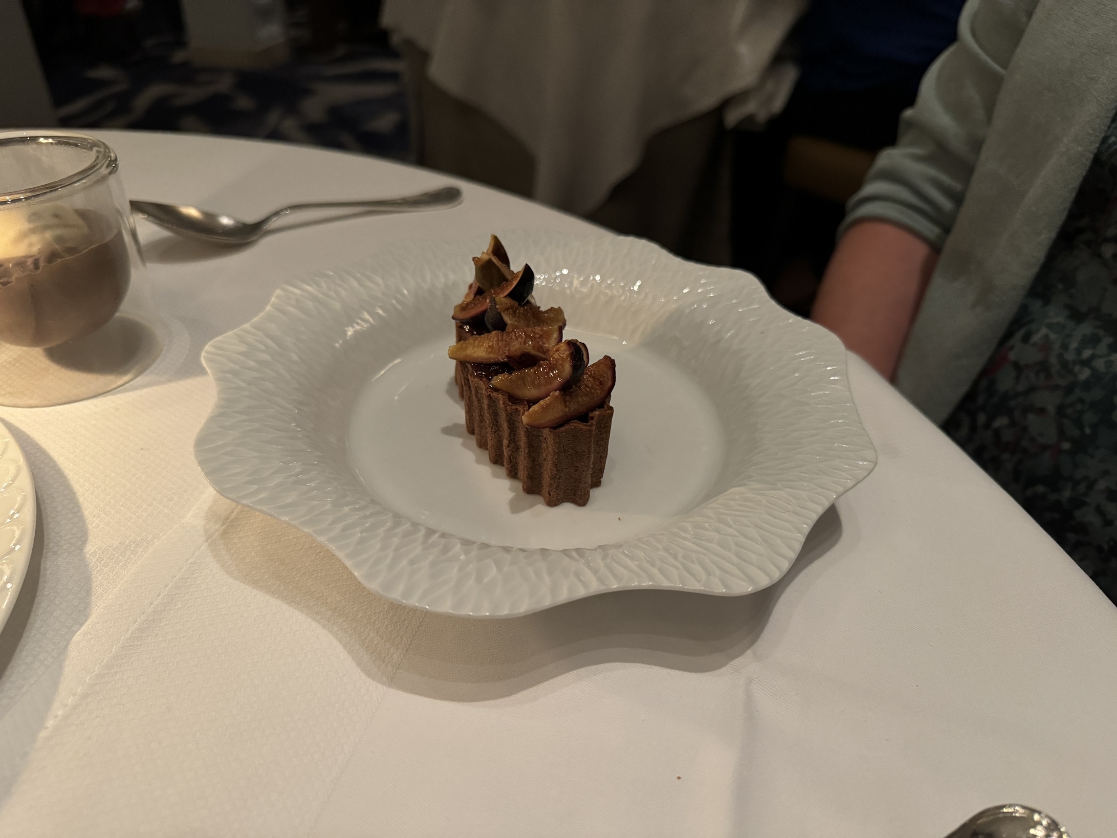Kimberly's dessert: chocolate madeleine with roasted figs and sunflower honey cacao nib ice cream.