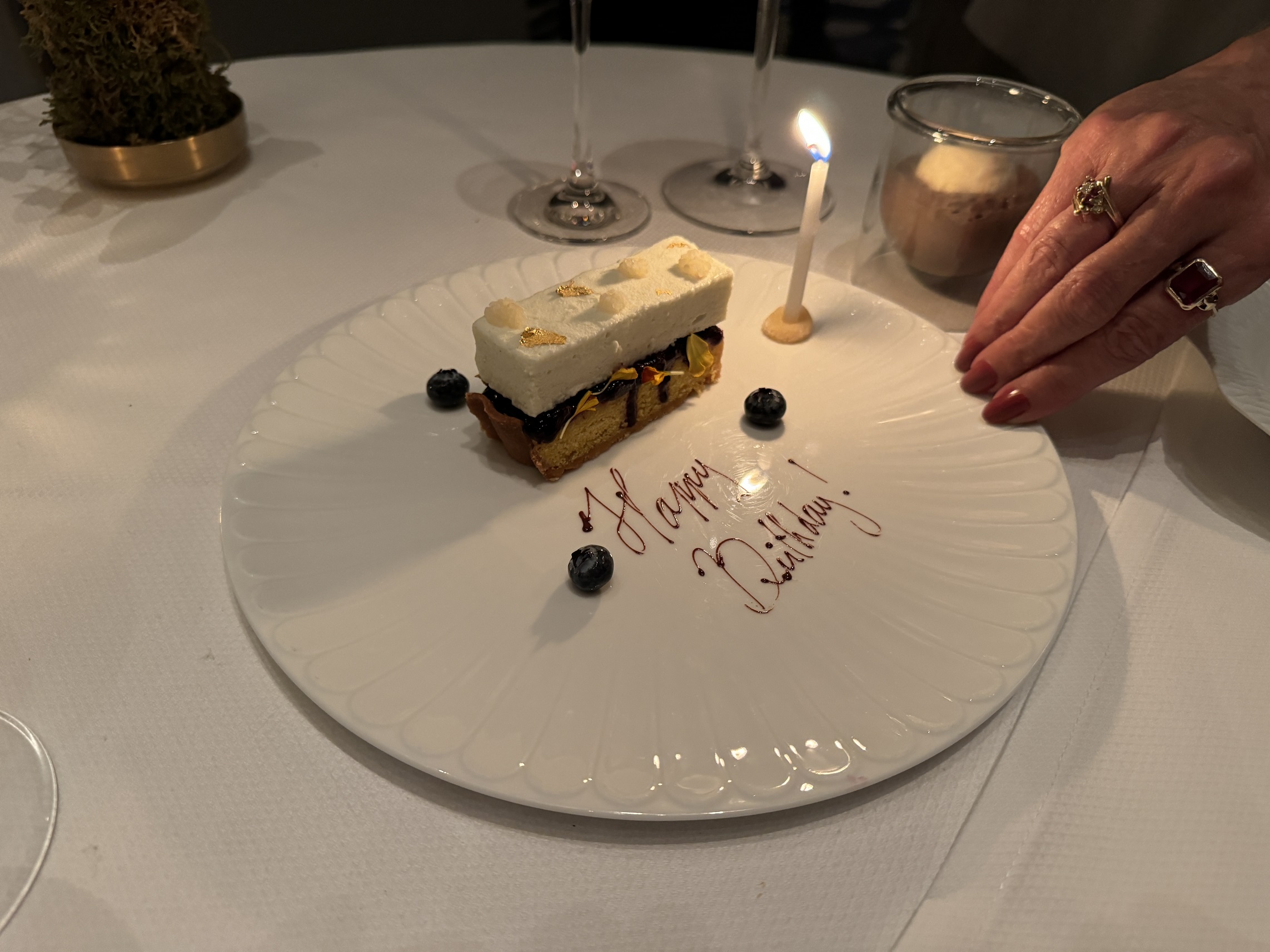 As if that wasn't enough, we also had a cheese course, and they brought a slice of lemon polenta birthday cake...
