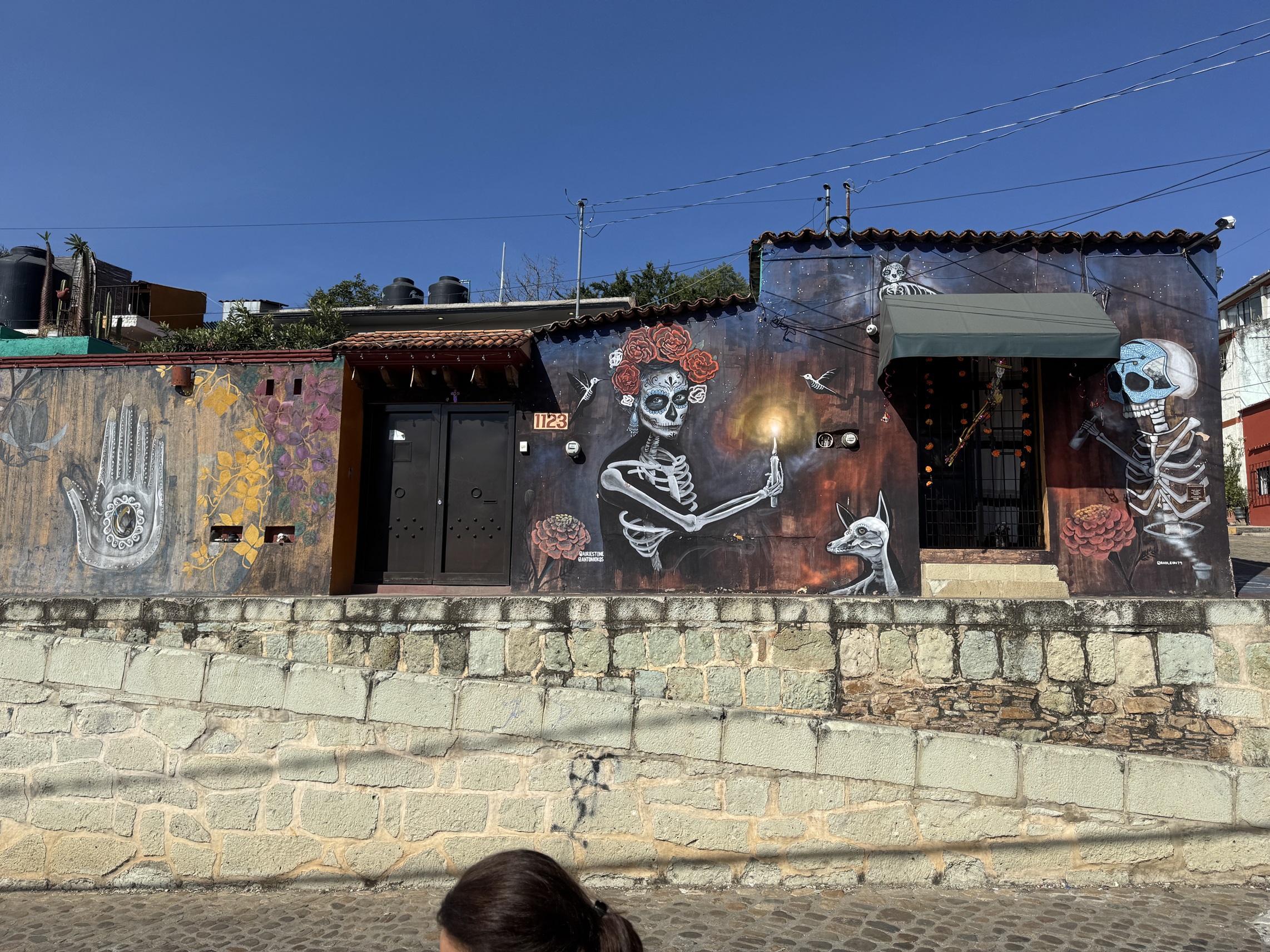After breakfast, we walk through some more buildings painted for the Day of the Dead.