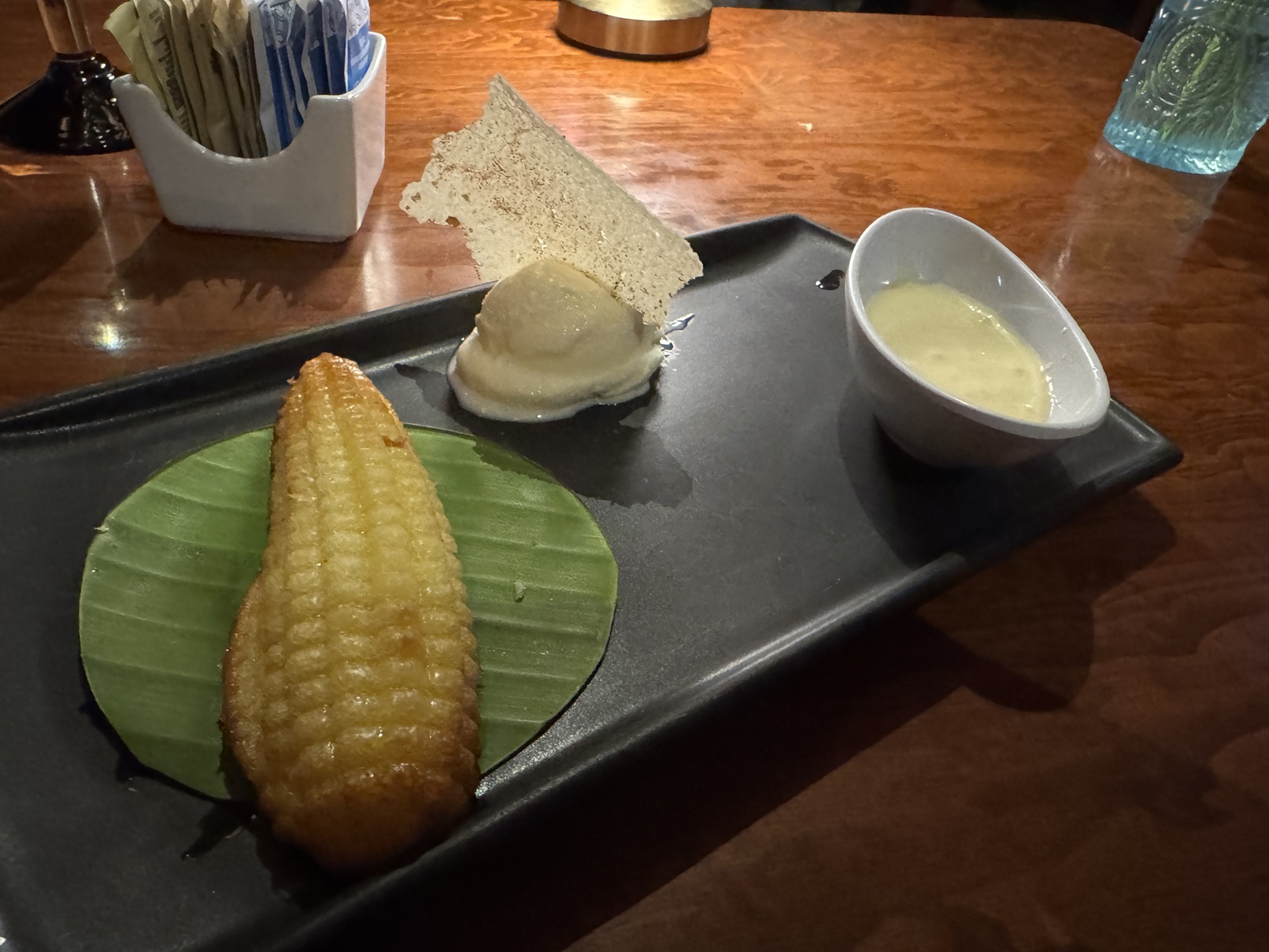 The dessert was this delicious and very light corn "pound" cake, served with ice cream and sauce.