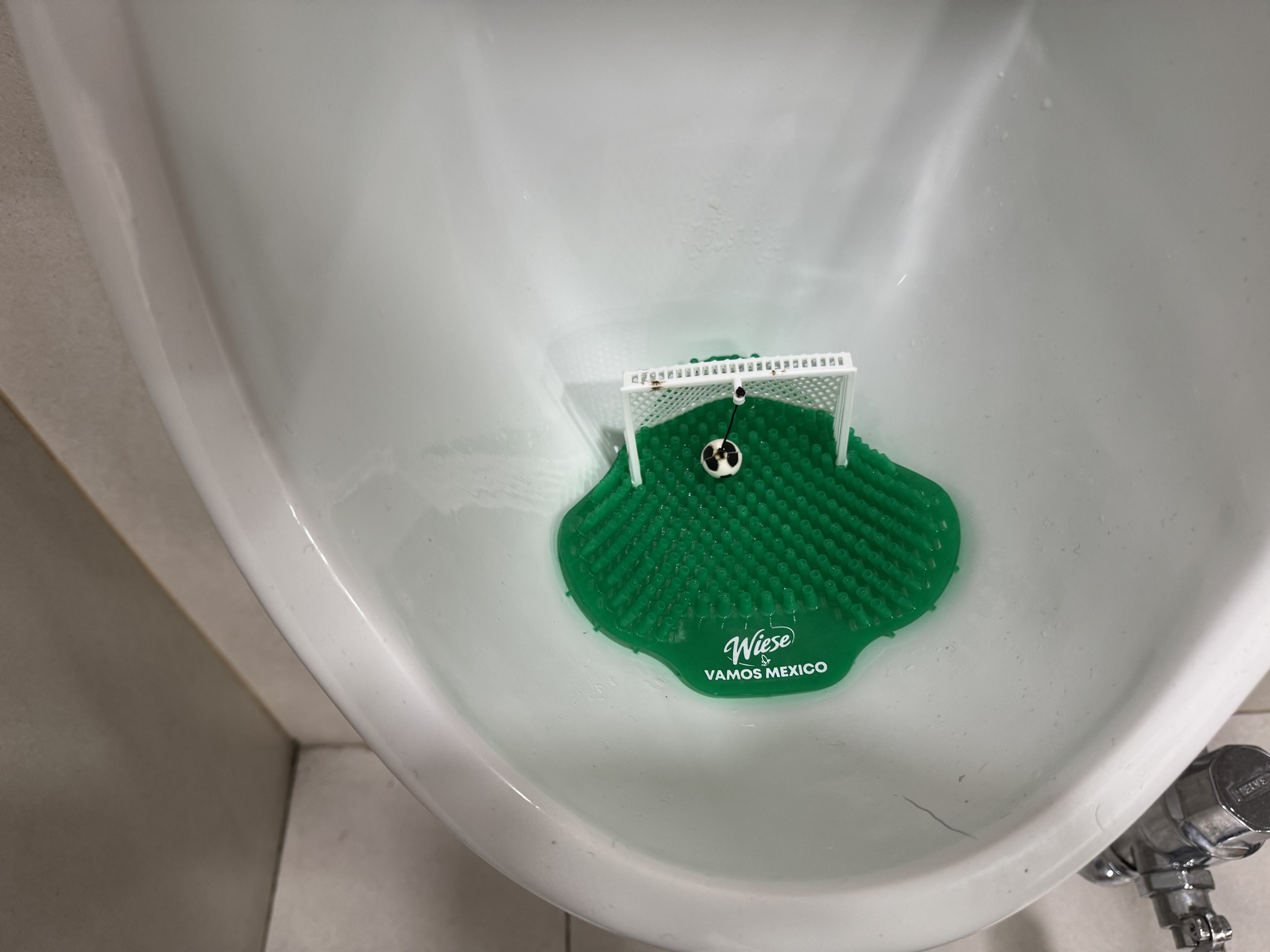 Nothing to report from the trip. This little soccer goal "target" was in the urinal in the Mexico City airport. We were just happy to make it without the TSA strikes interfering.