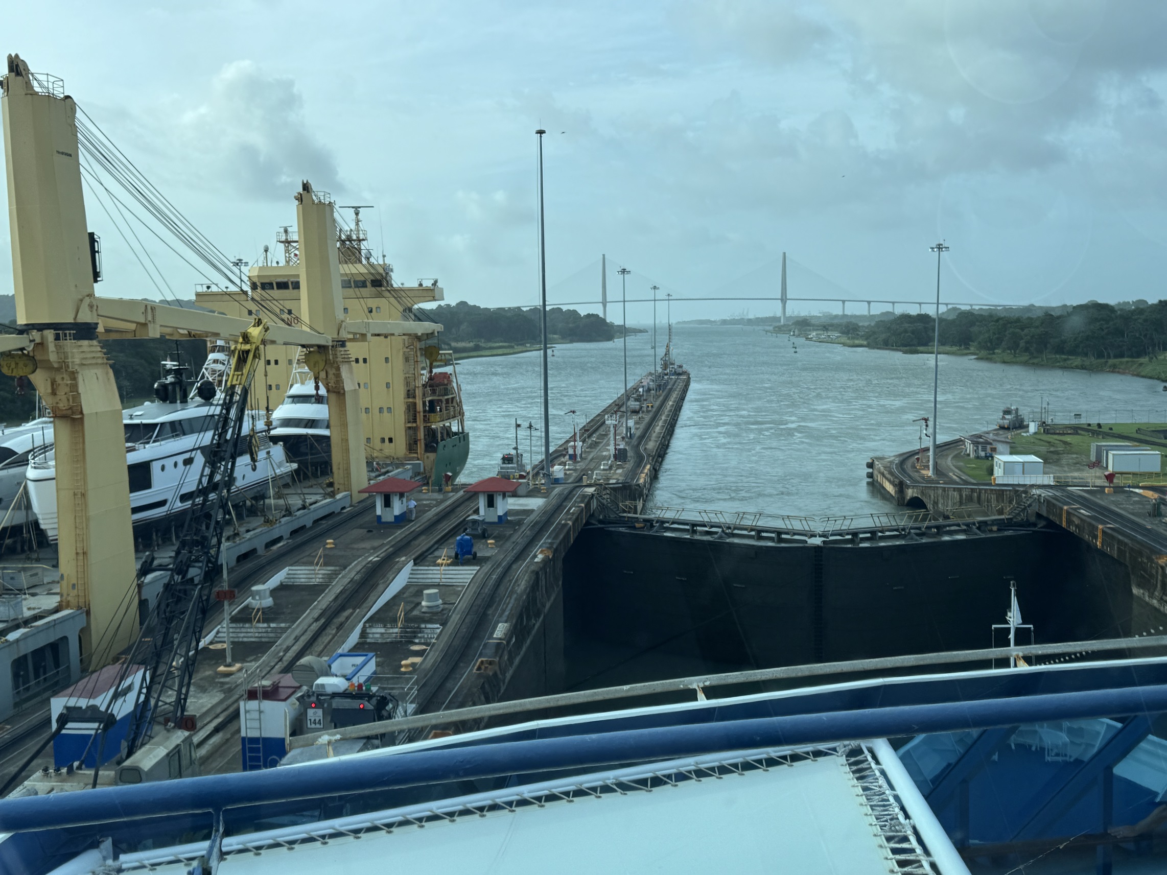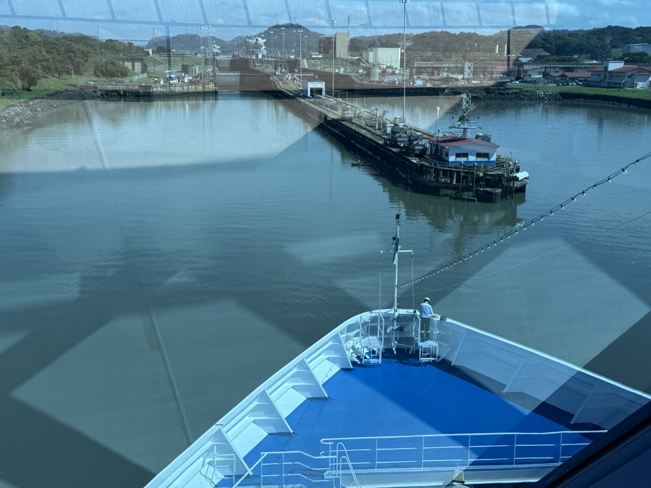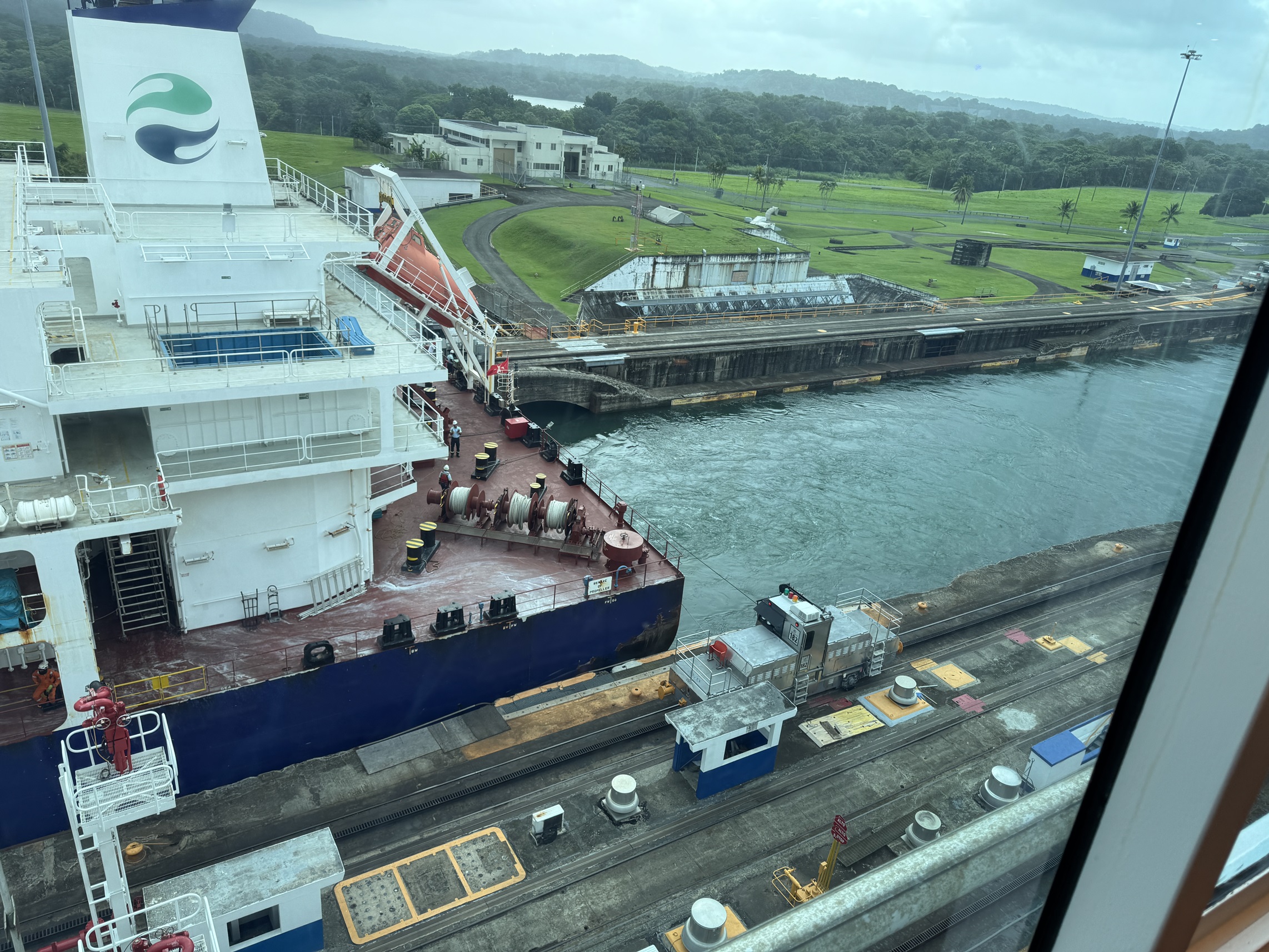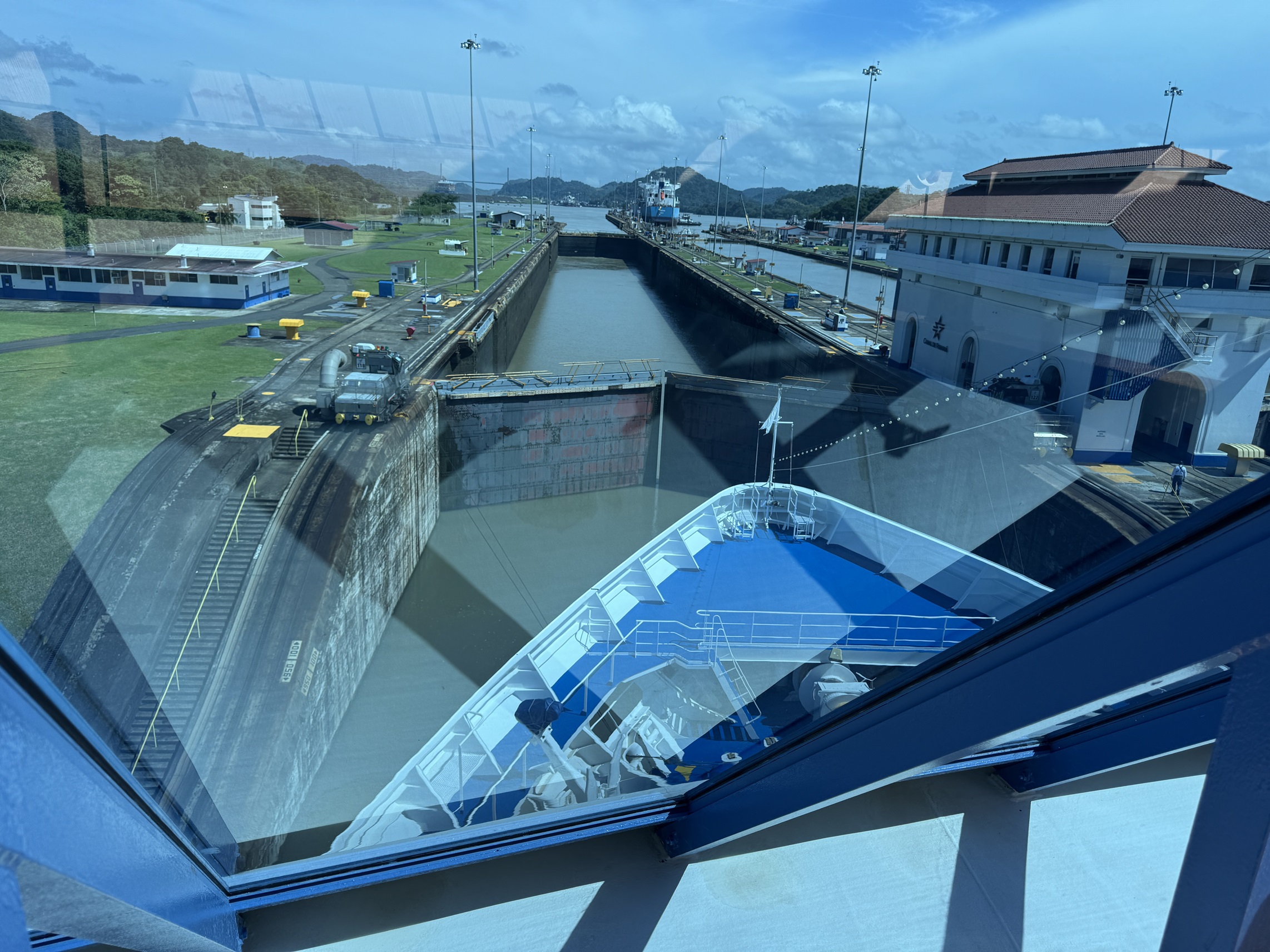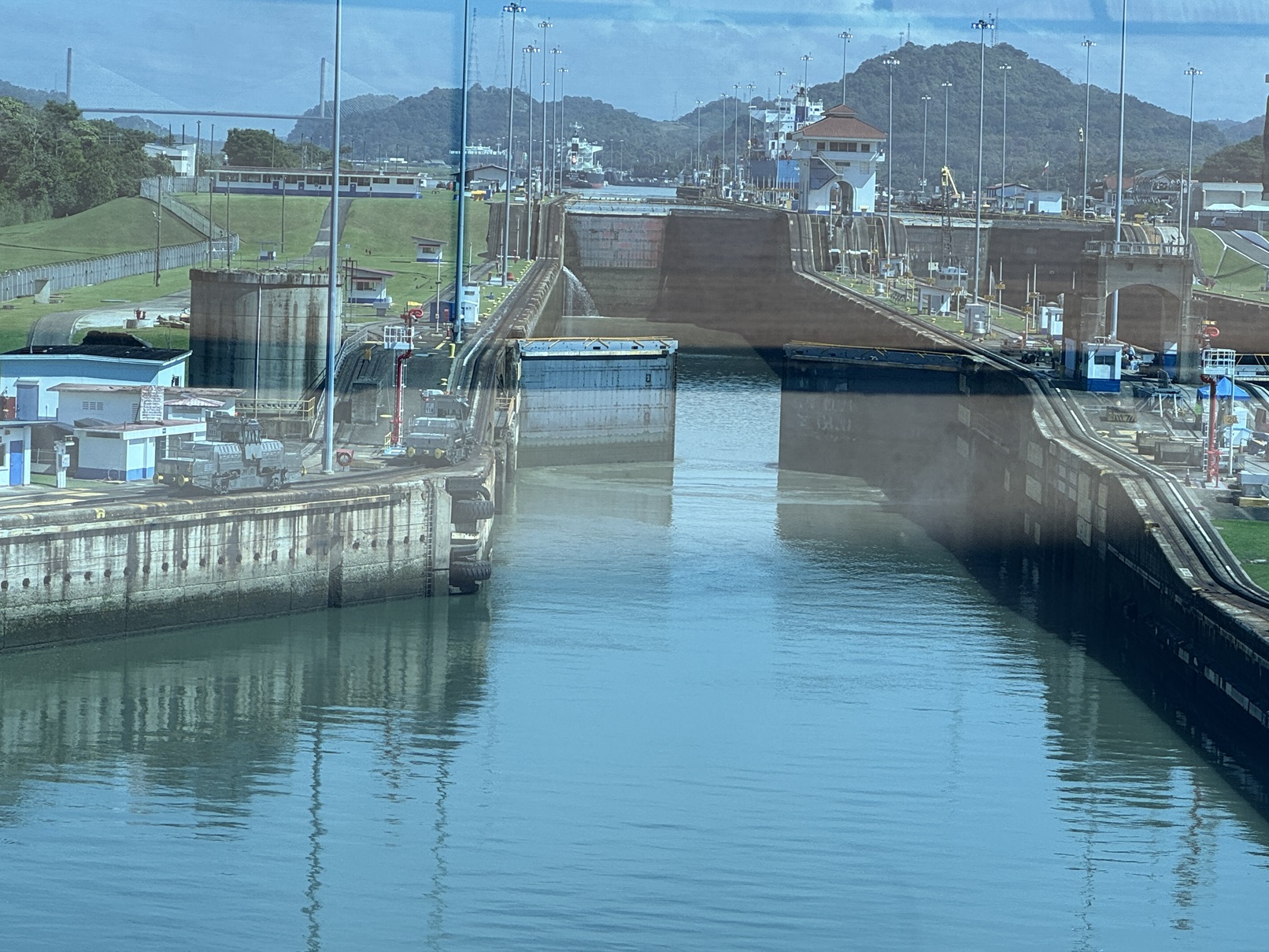 We are in the lock, waiting for the water to raise us. It is all gravity-fed, no pumps.