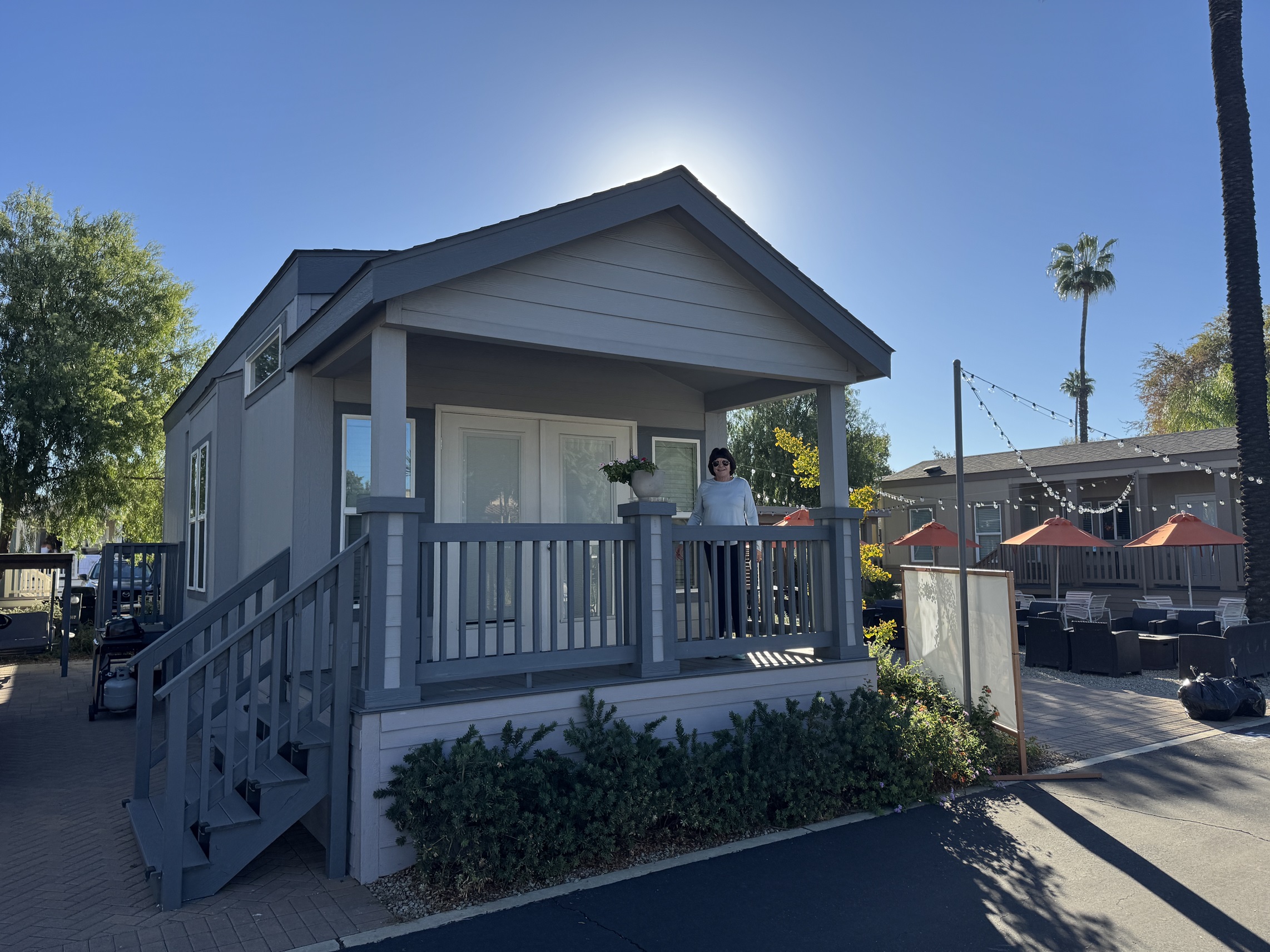 We stayed at the Golden Village Palms in Hemet, an RV resort that also has these bungalows.