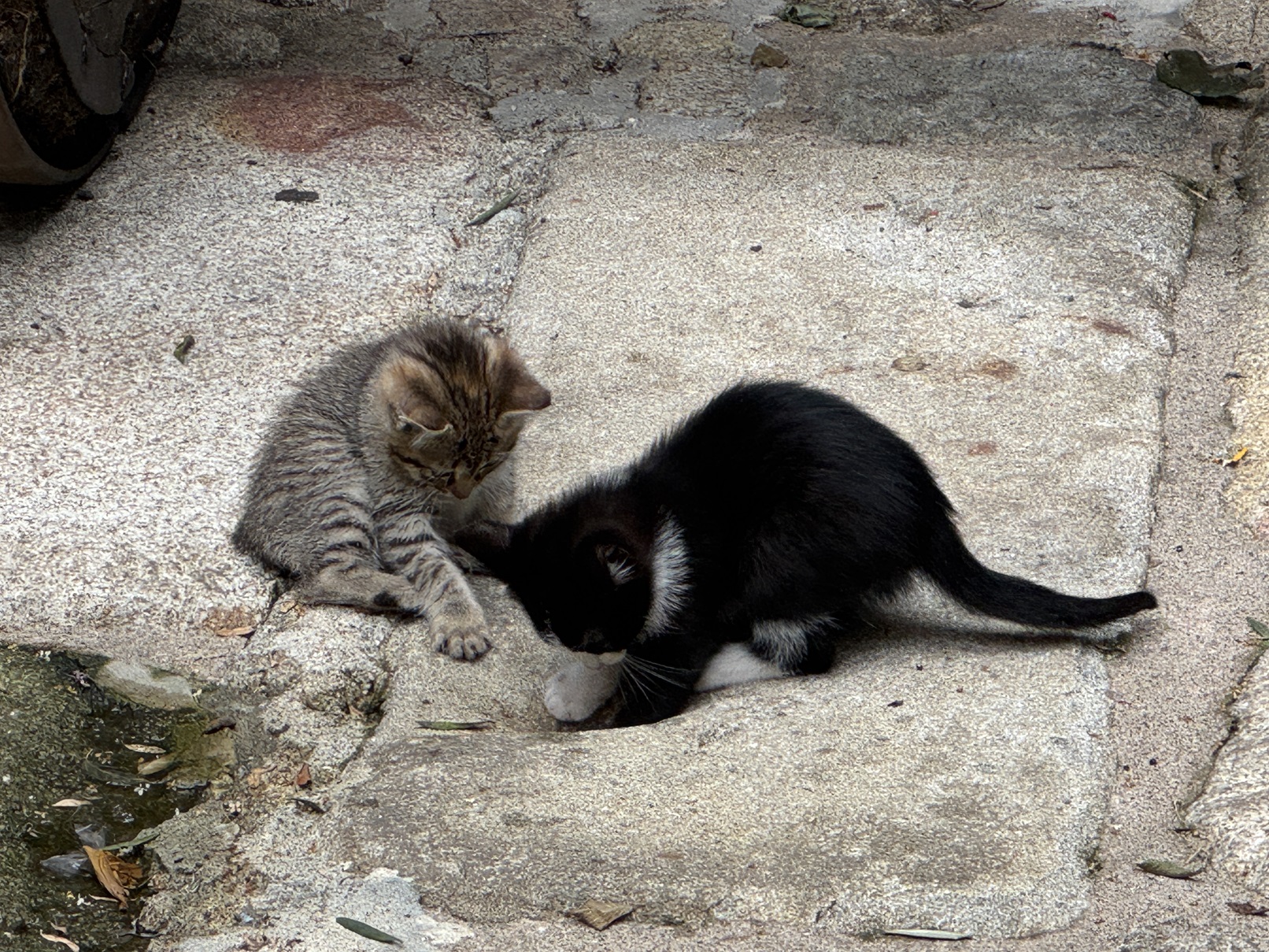 Waiting for everyone to finish up and pay, we saw these kittens playing in the courtyard.