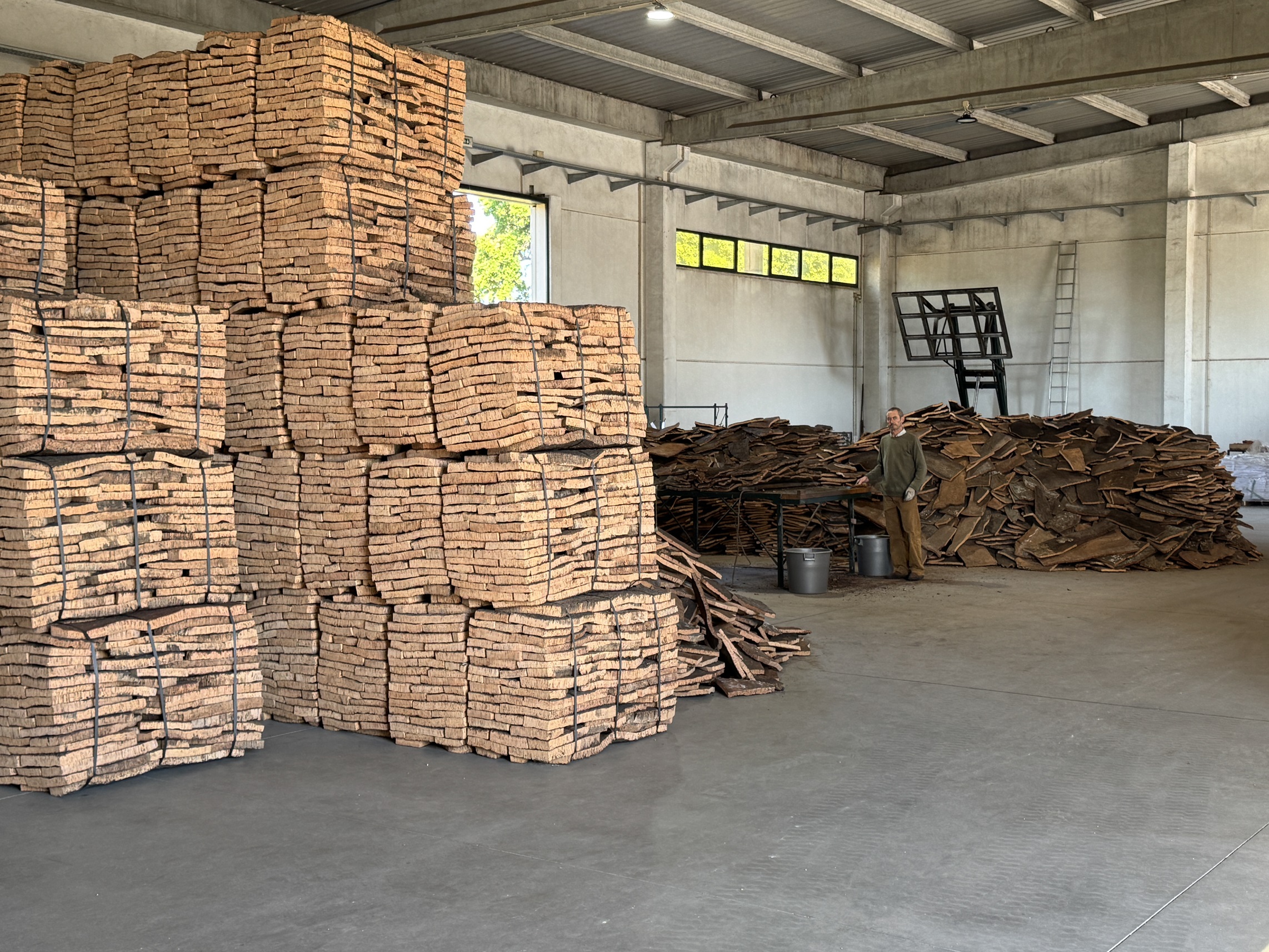 After being harvested, the cork is stacked and left to dry in the sun for a couple of months.