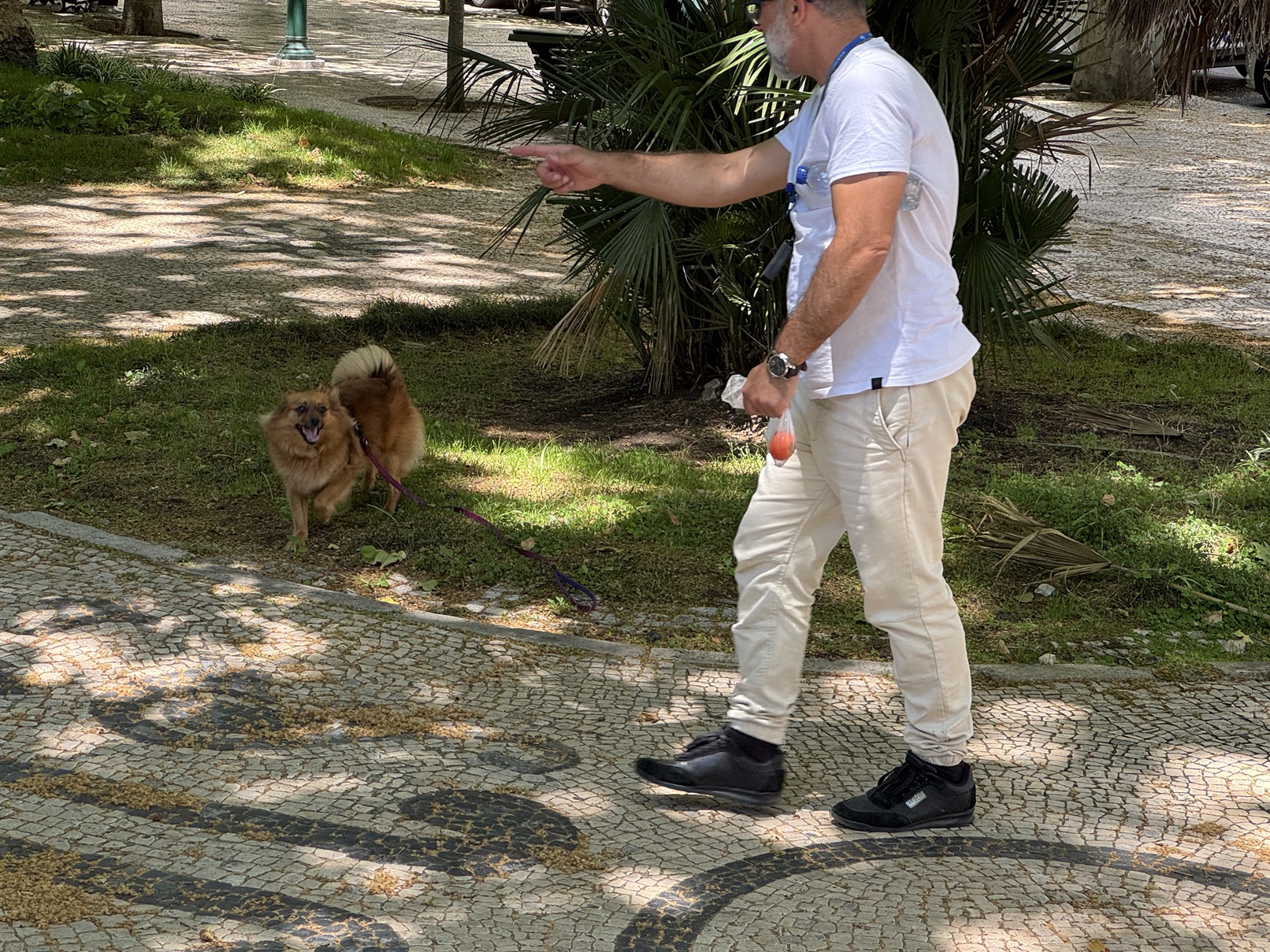 Luciano's friend stops by and drops off Luciano's dog to accompany us.