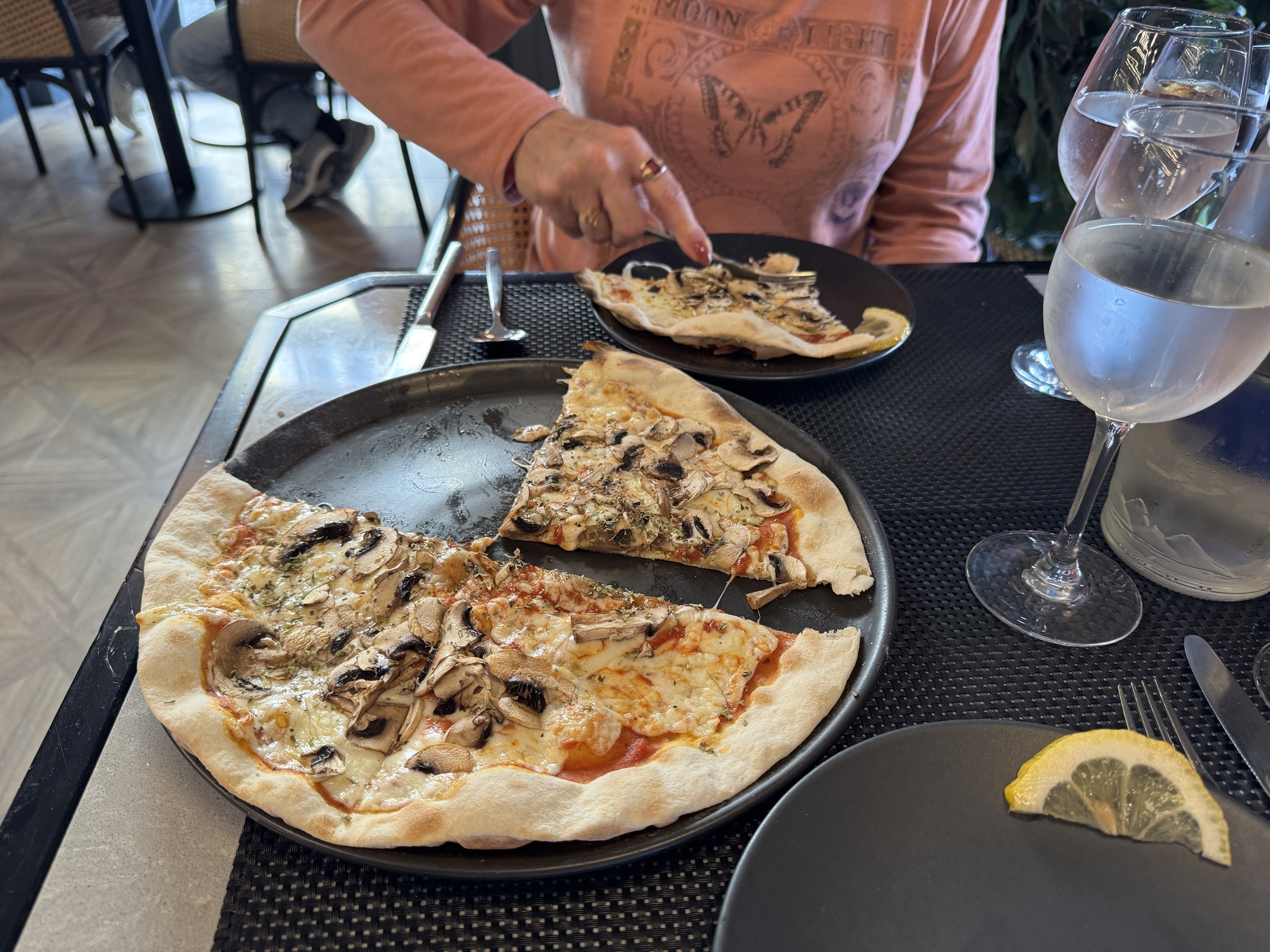 They left the group and walked down the street and split a pizza, saving room for their special dinner.