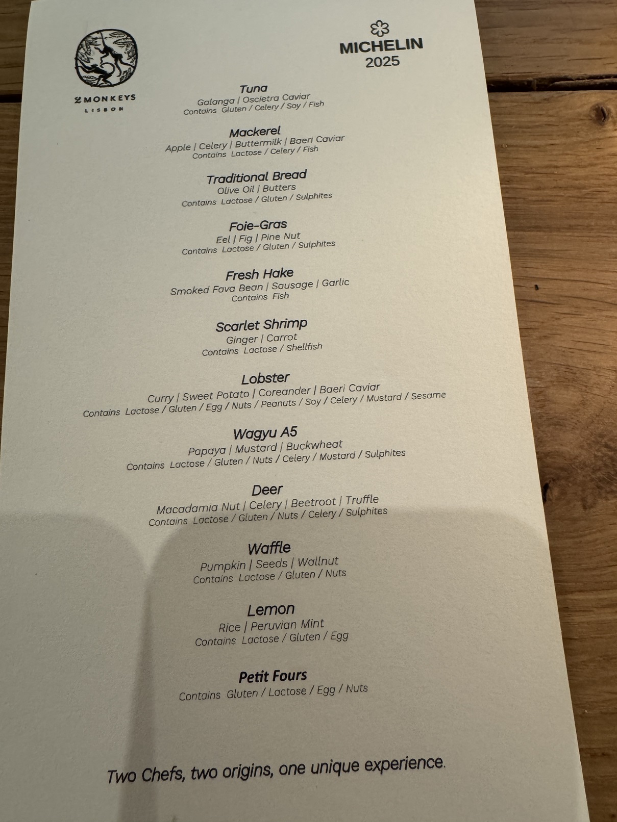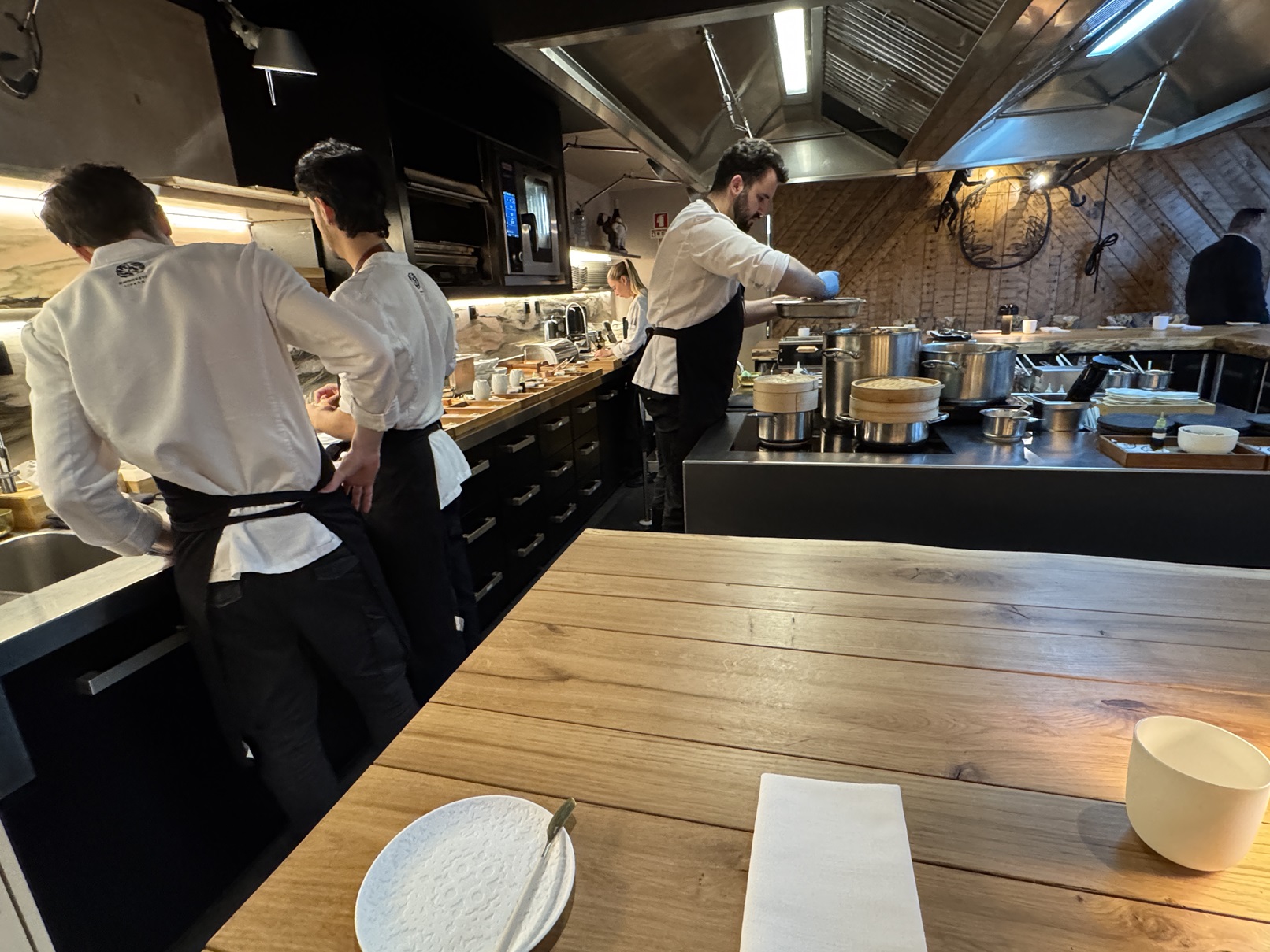 2Monkeys is a Michelin-starred restaurant where everyone is seated at this U-shaped bar.