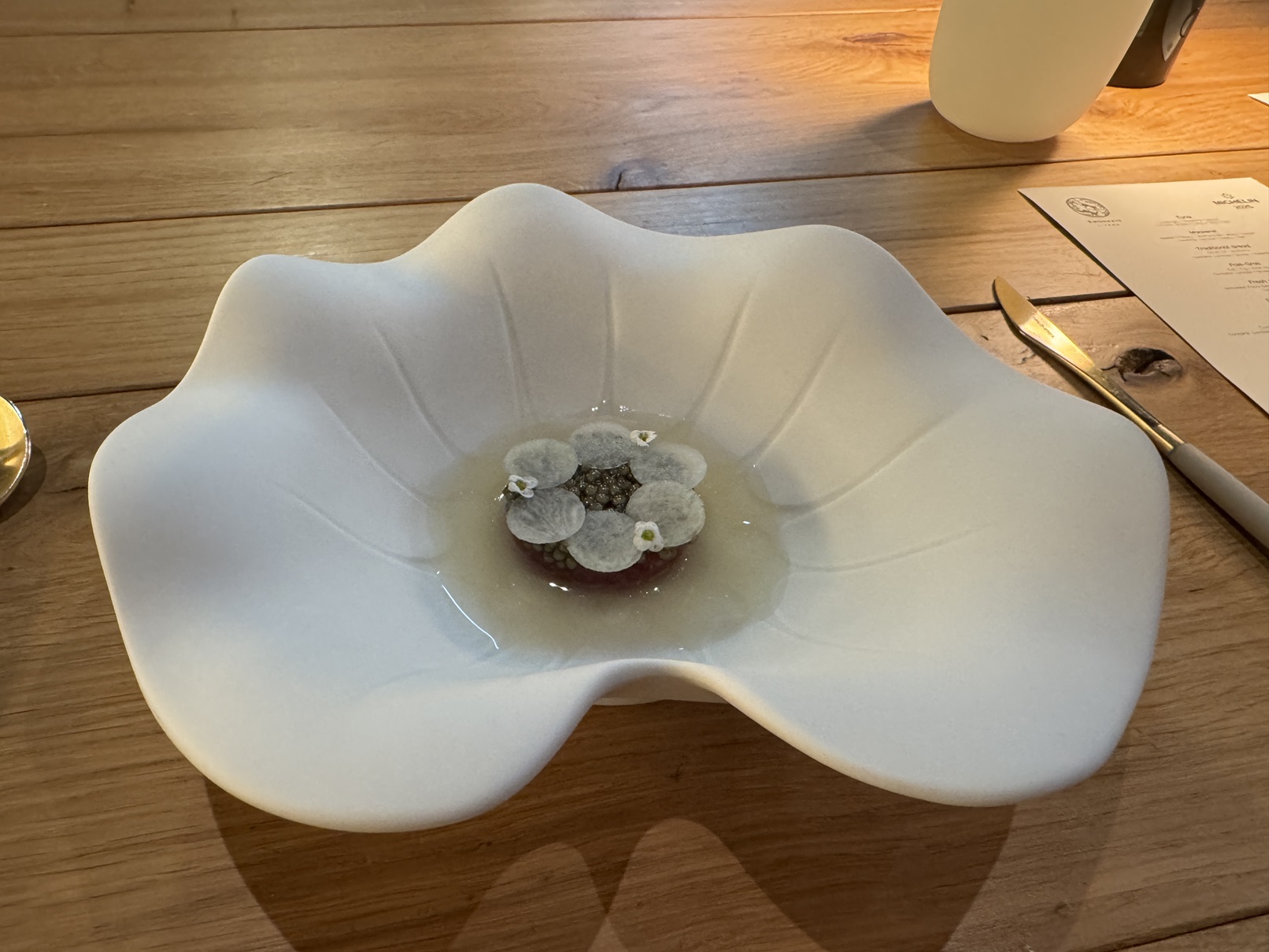 Part one of the lobster course, with just the claws in a shell with Baeri caviar.