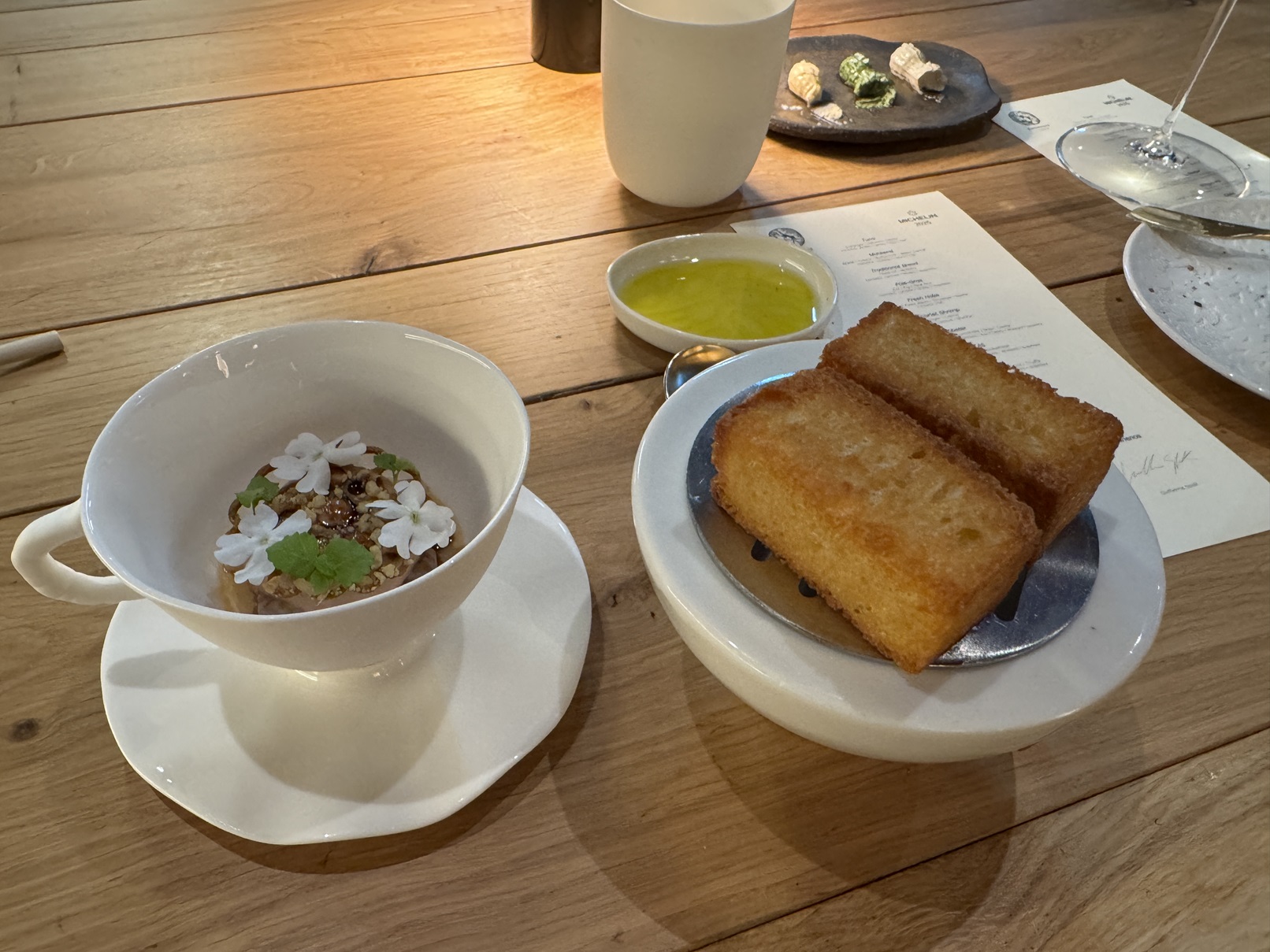 The foie gras course: with eel and fig, and the butteriest brioche crunch you could imagine.