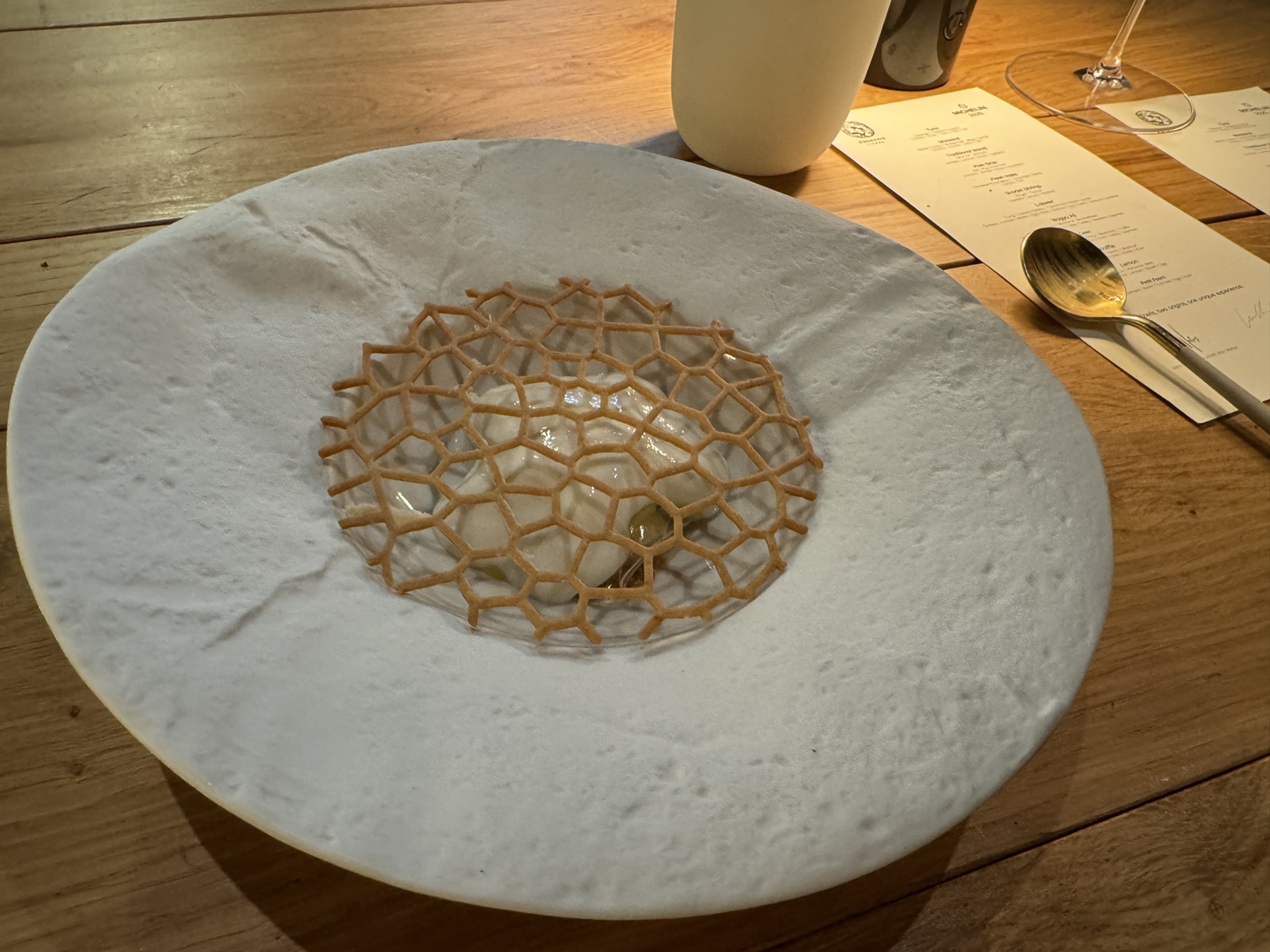 Second dessert: lemon-flavored sweet rice, with a cinnamon-flavored tuille.