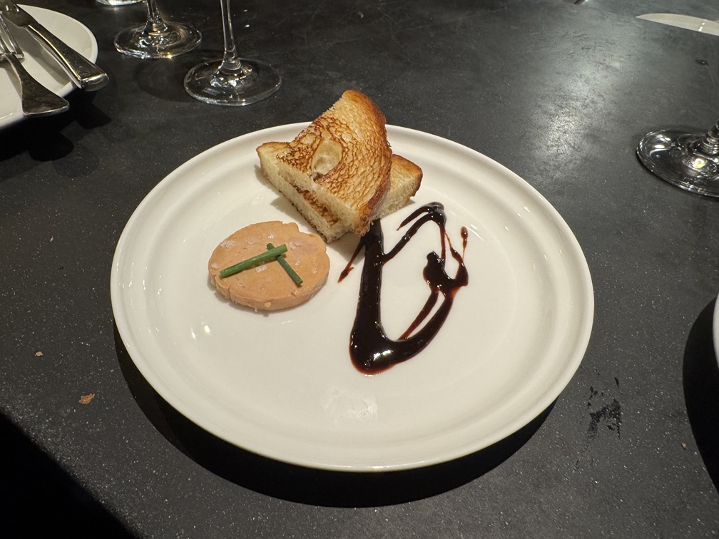 A foie gras course; not technically legal for most restaurants in California.
