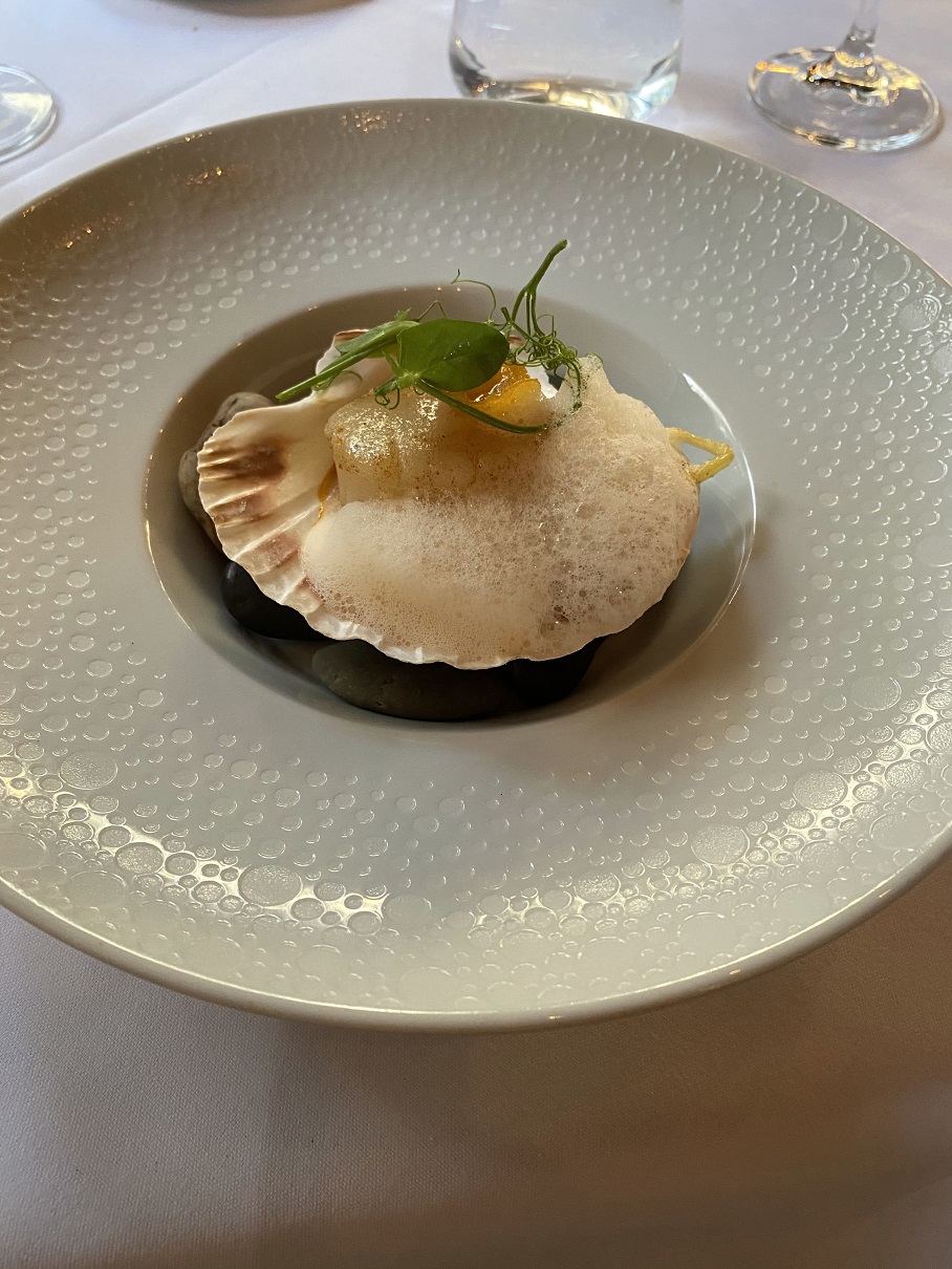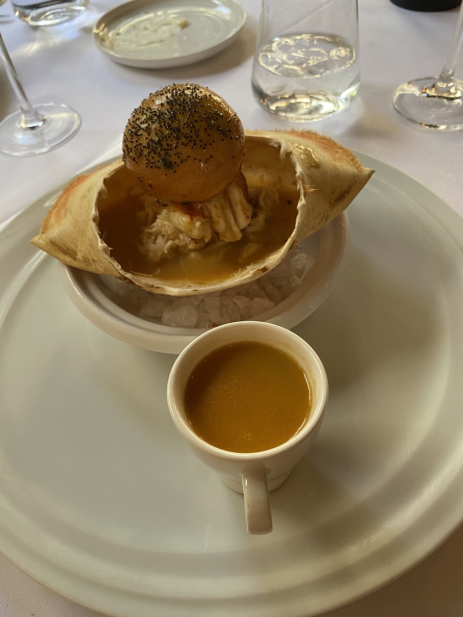 The third course was a scallop with sauce americaine and sea urchin butter.