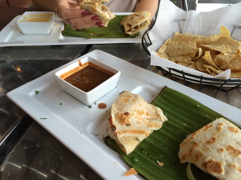 and split a couple of quesadillas: one is a duck confit quesadilla, and
