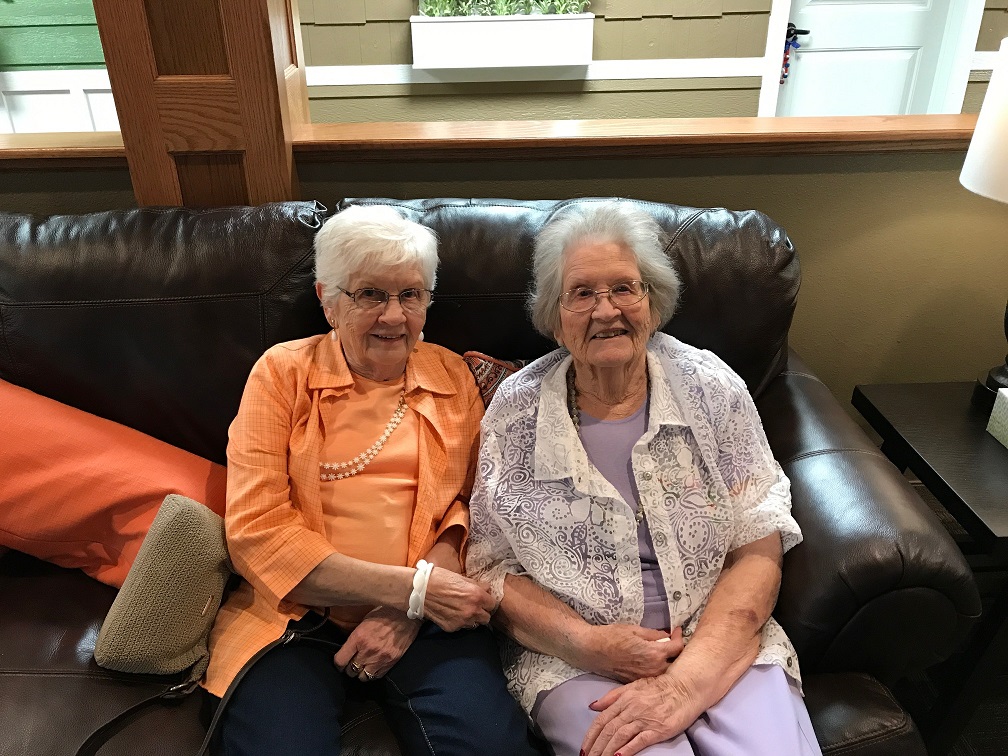 We went to visit Aunt Mabel; here's Mom and Mabel.