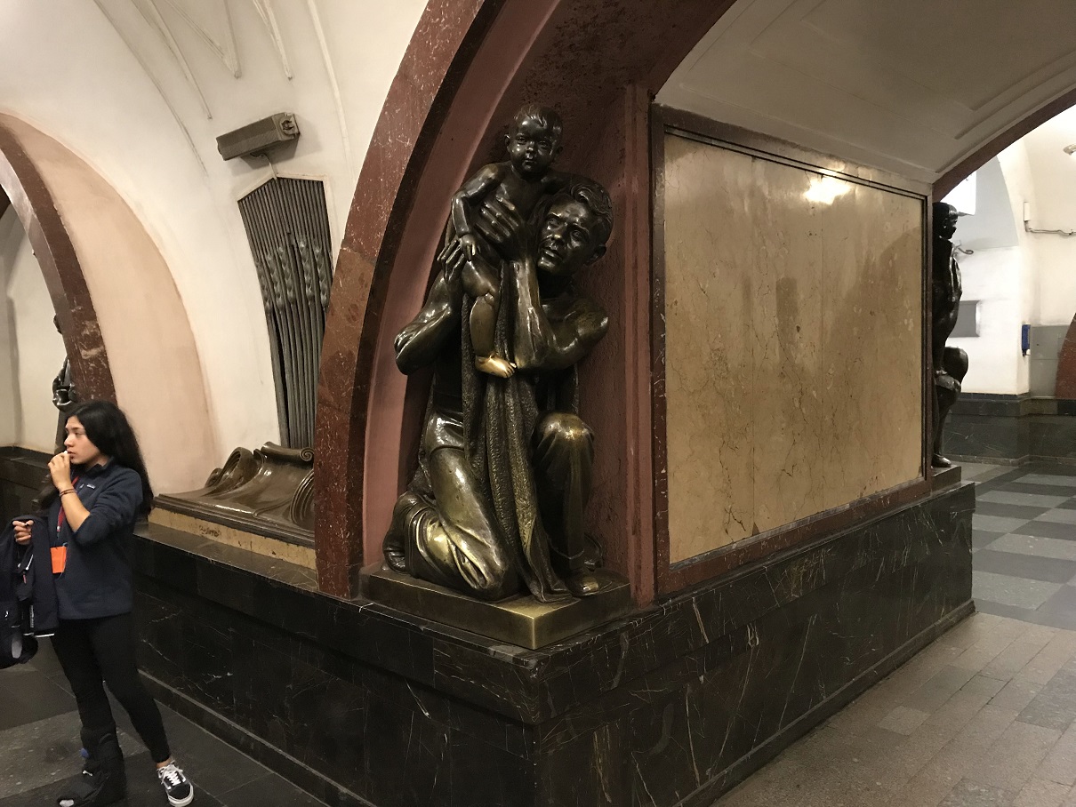 This station is decorated with bronze statues of the working class.