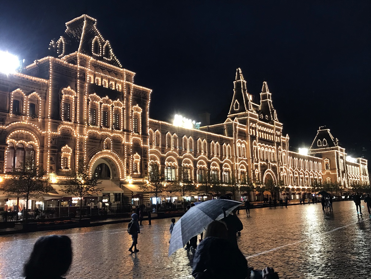 Day 10 -- Travel to Moscow, subways and Red Square at night.