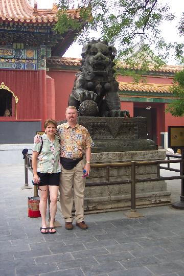 Kimberly and Wade with another lion.