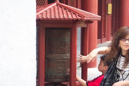 A Buddhist prayer wheel.