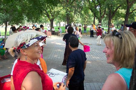 With some local performers in the park.