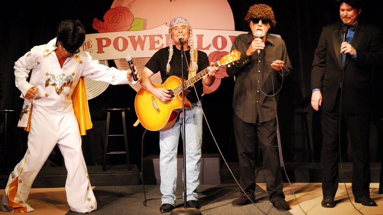 Dave as Elvis, Ricky as Willy Nelson, Hans as Bob Dylan, and Wade a Julio Inglesias doing the