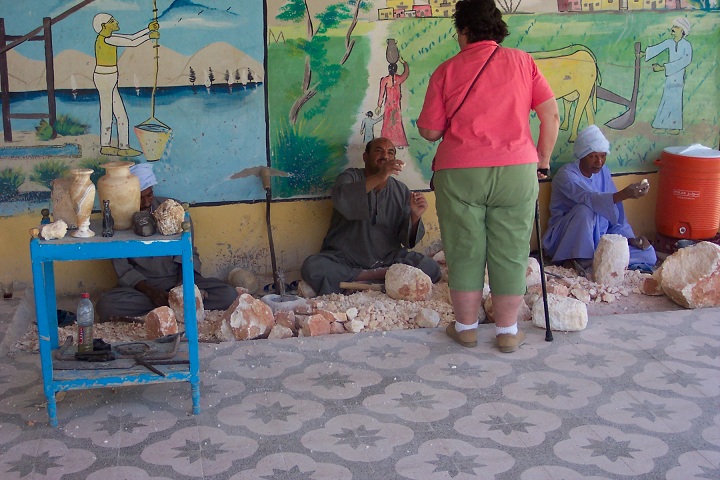 These three gentlemen get to demonstrate for the tourists how alabaster