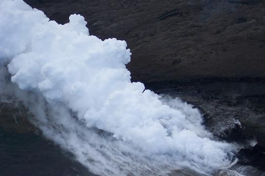 Here is the lava flowing downhill to the sea, and venting along the way.