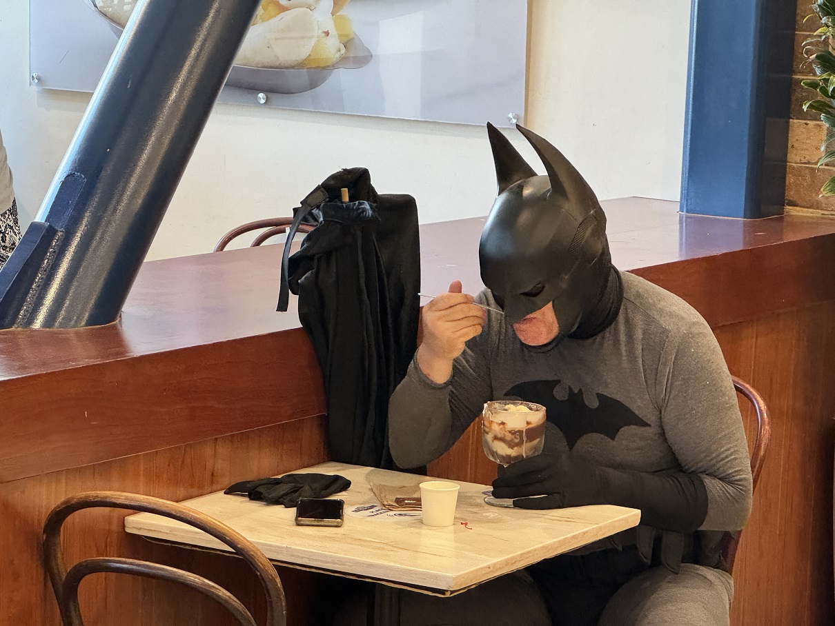 That is where we saw Batman eating a sundae. It was Comic-Con that week, so everywhere we went,
