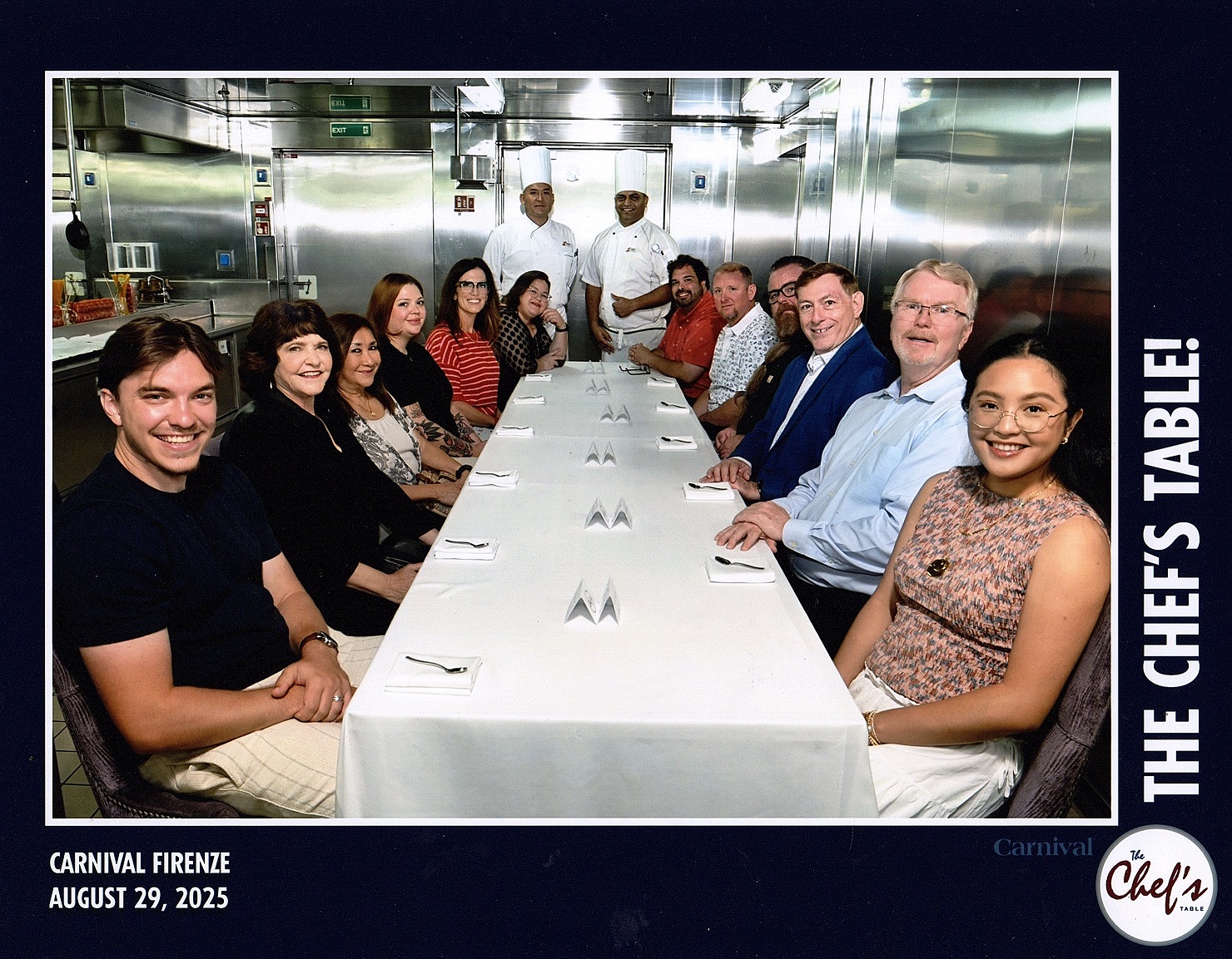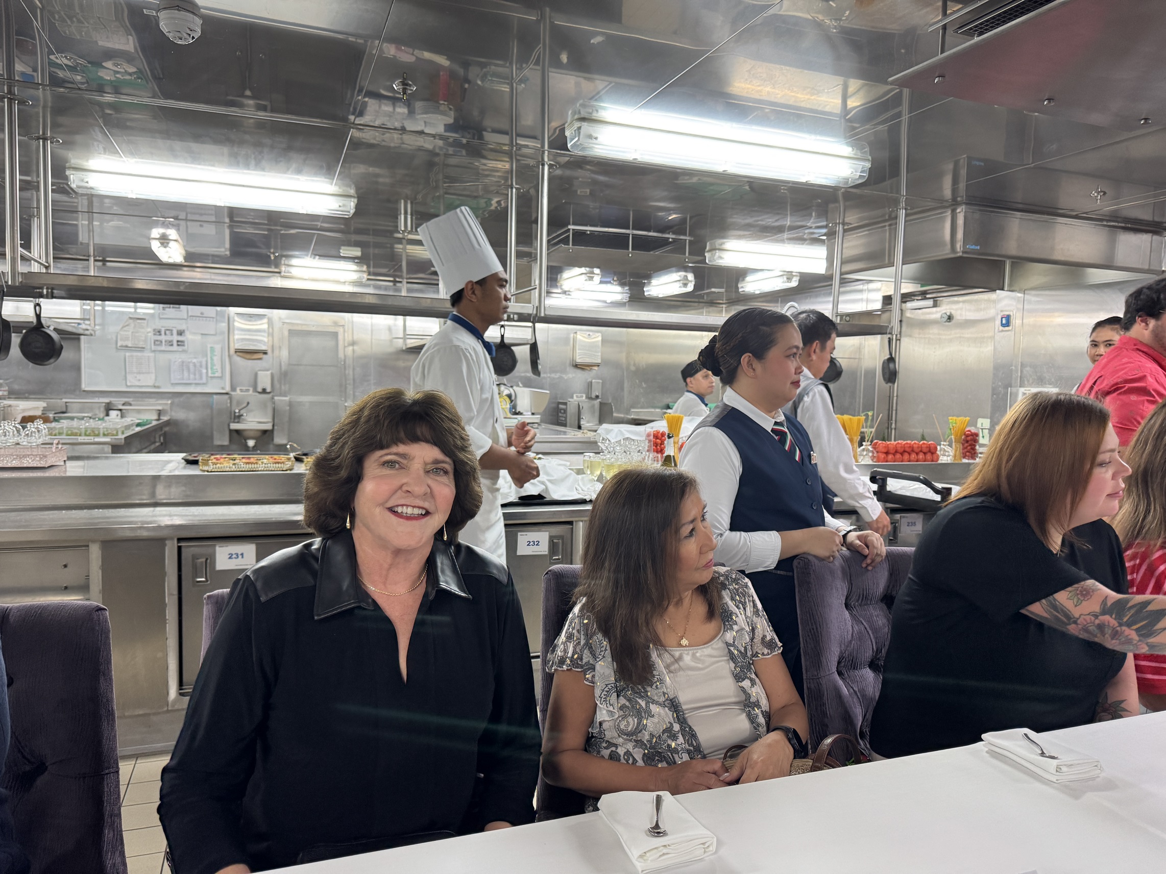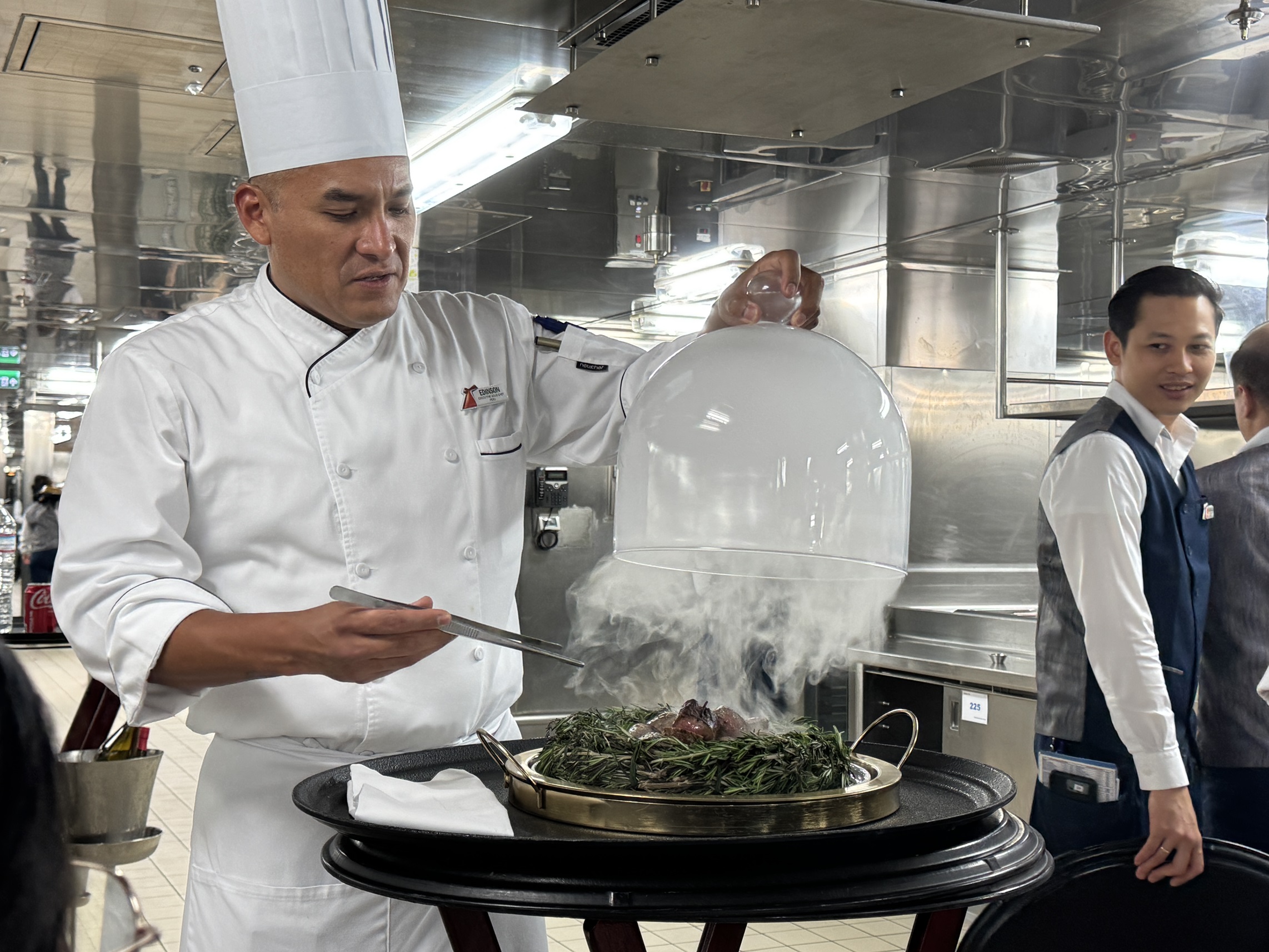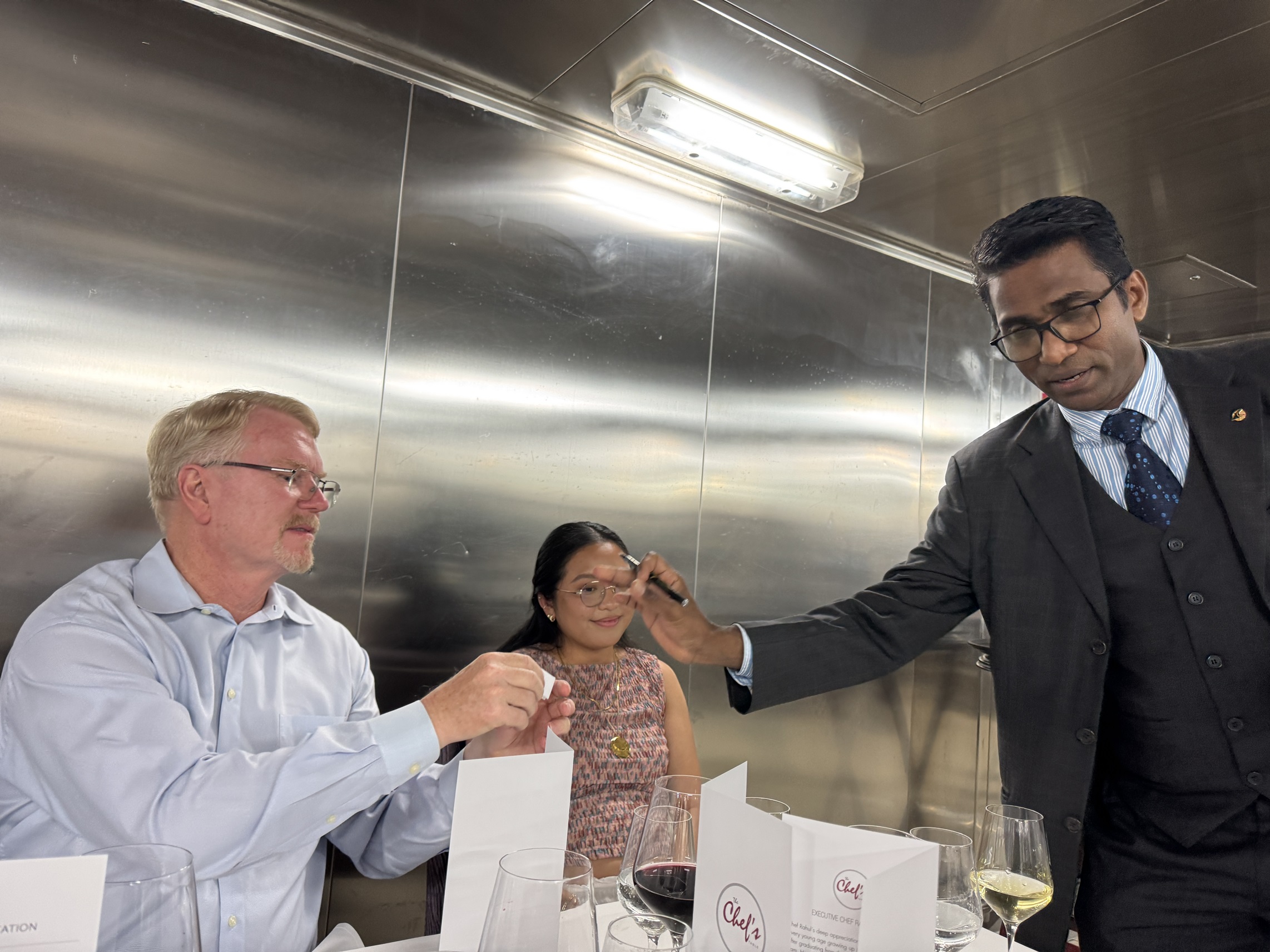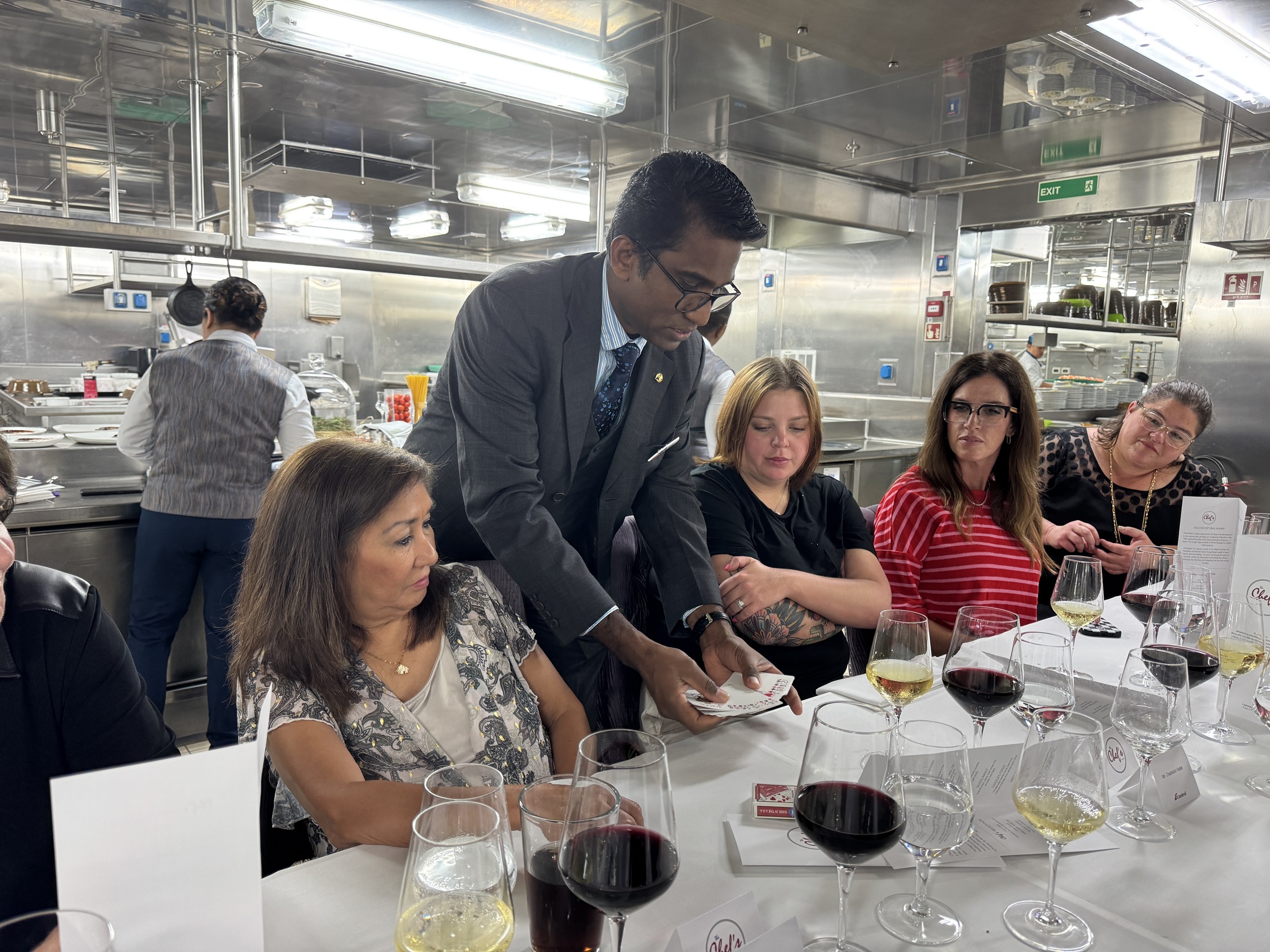 The chef's table is a coursed dinner that is served in the main galley of the ship.