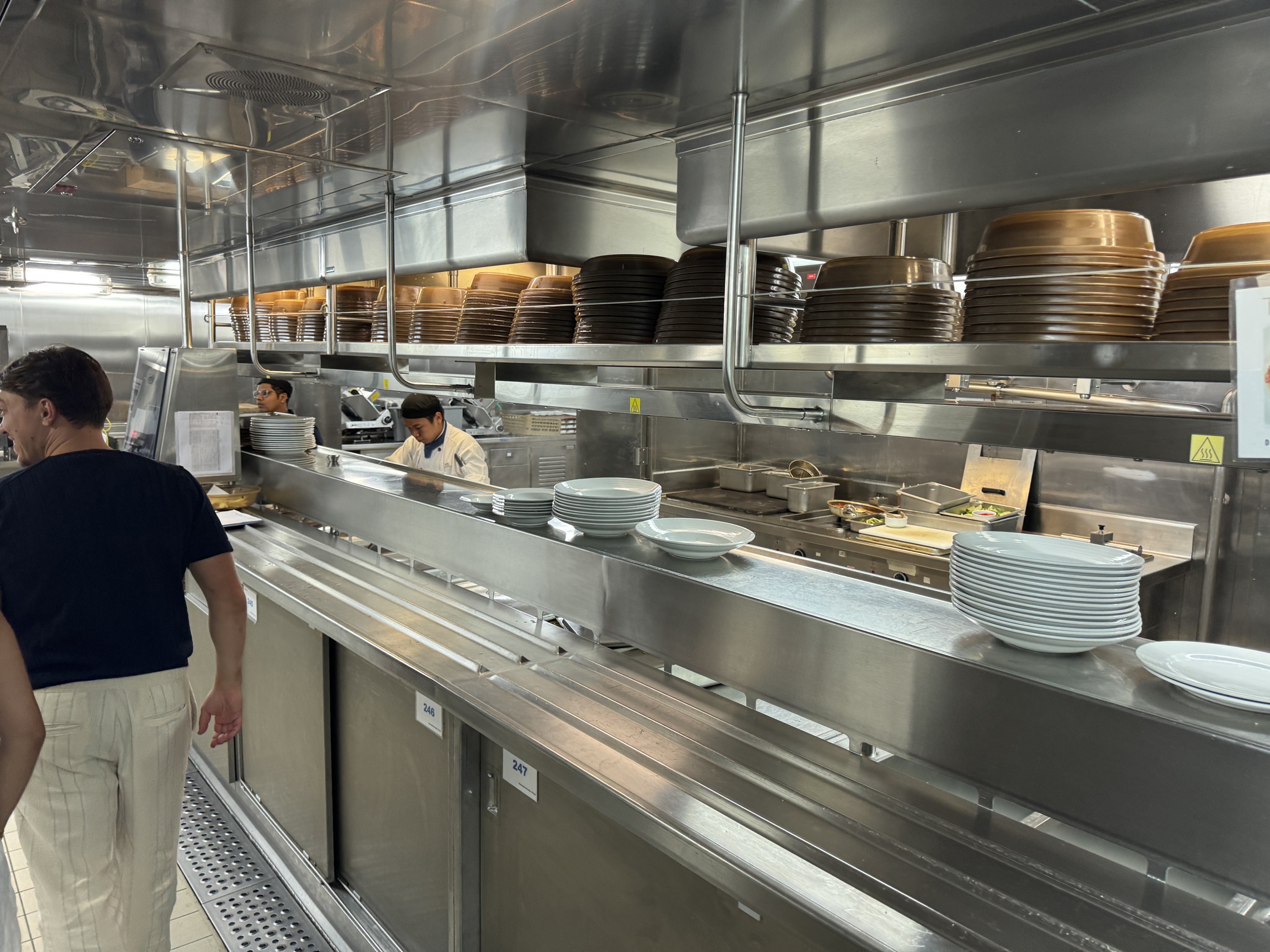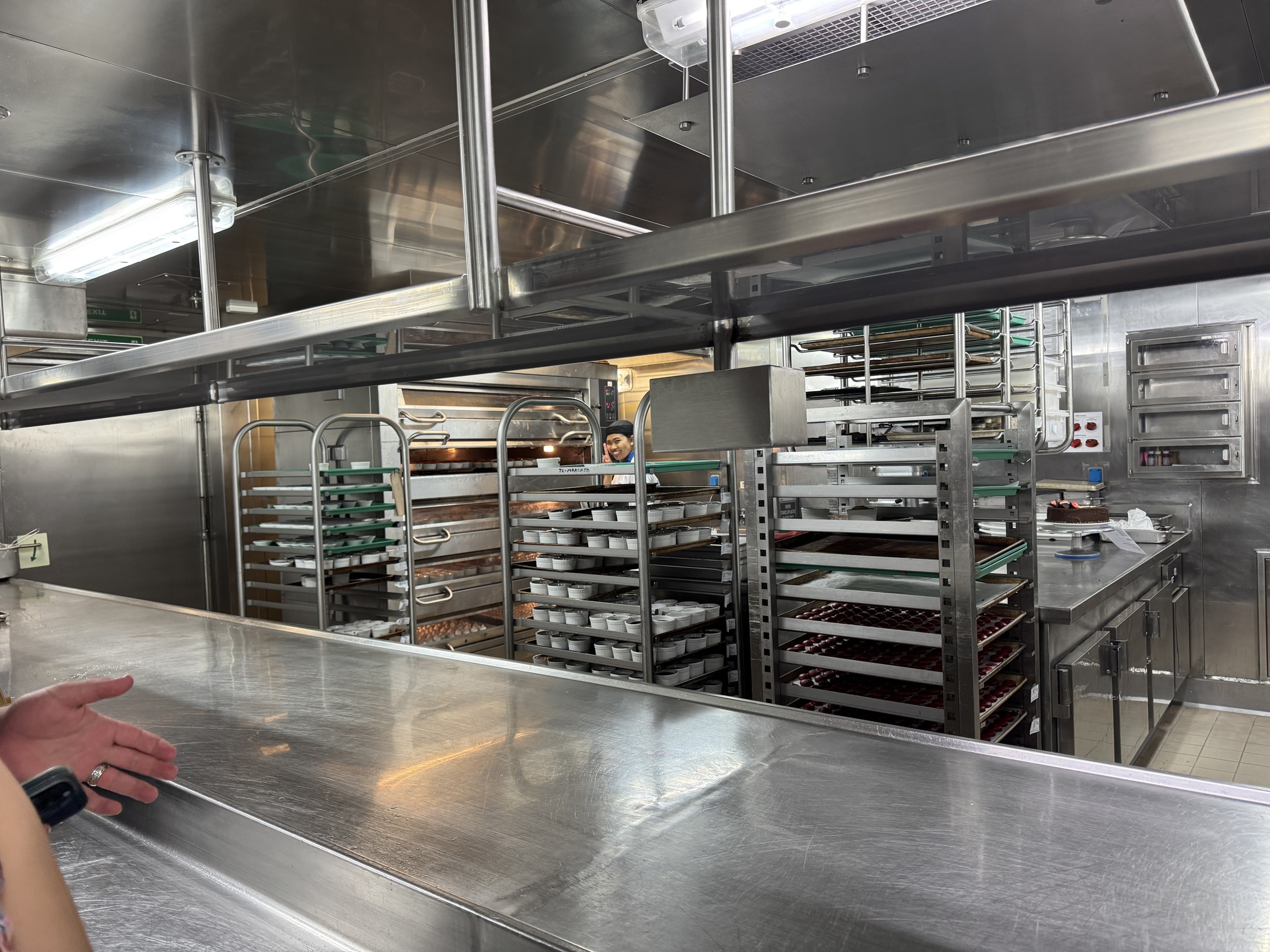 They take us on a tour of the kitchen, with the various stations for different foods.
