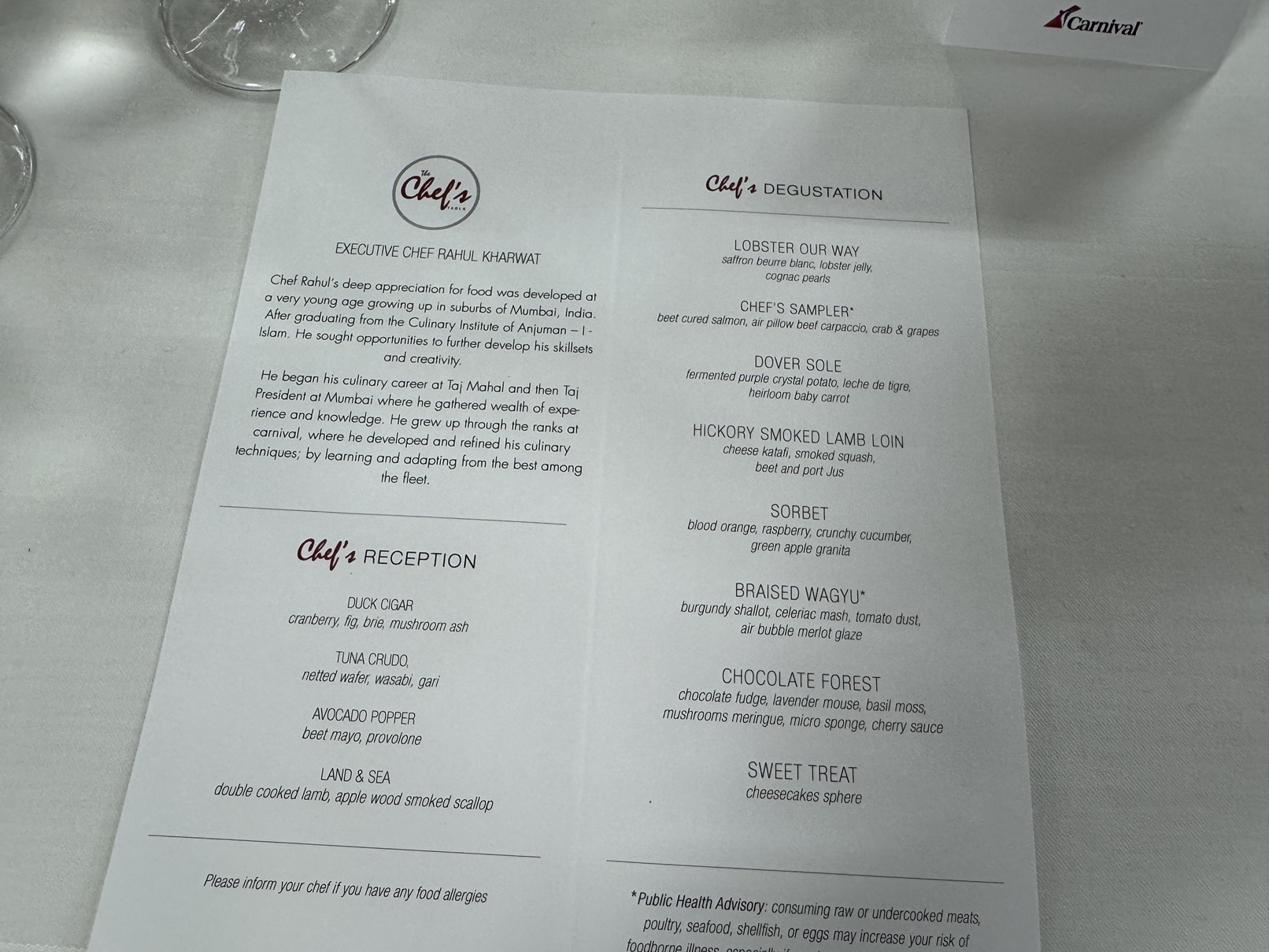 Our menu for the evening.