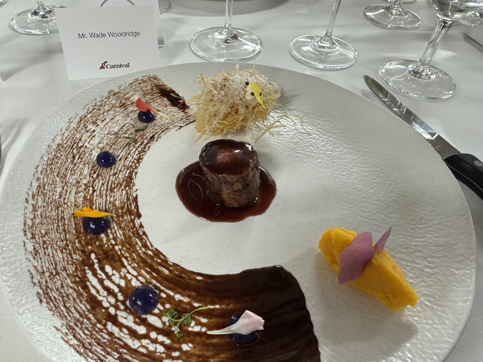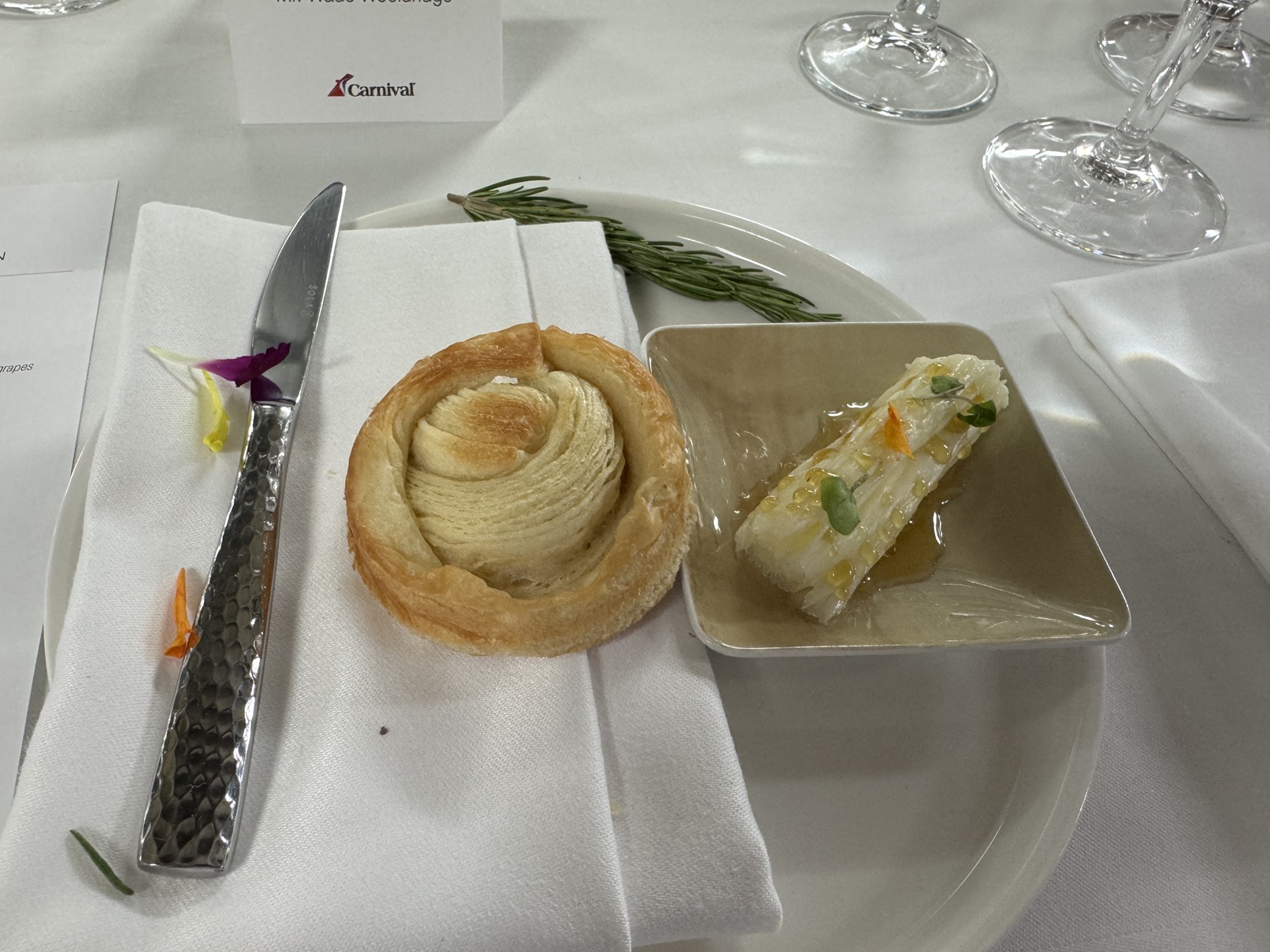 The setup for the lamb tenderloin course.