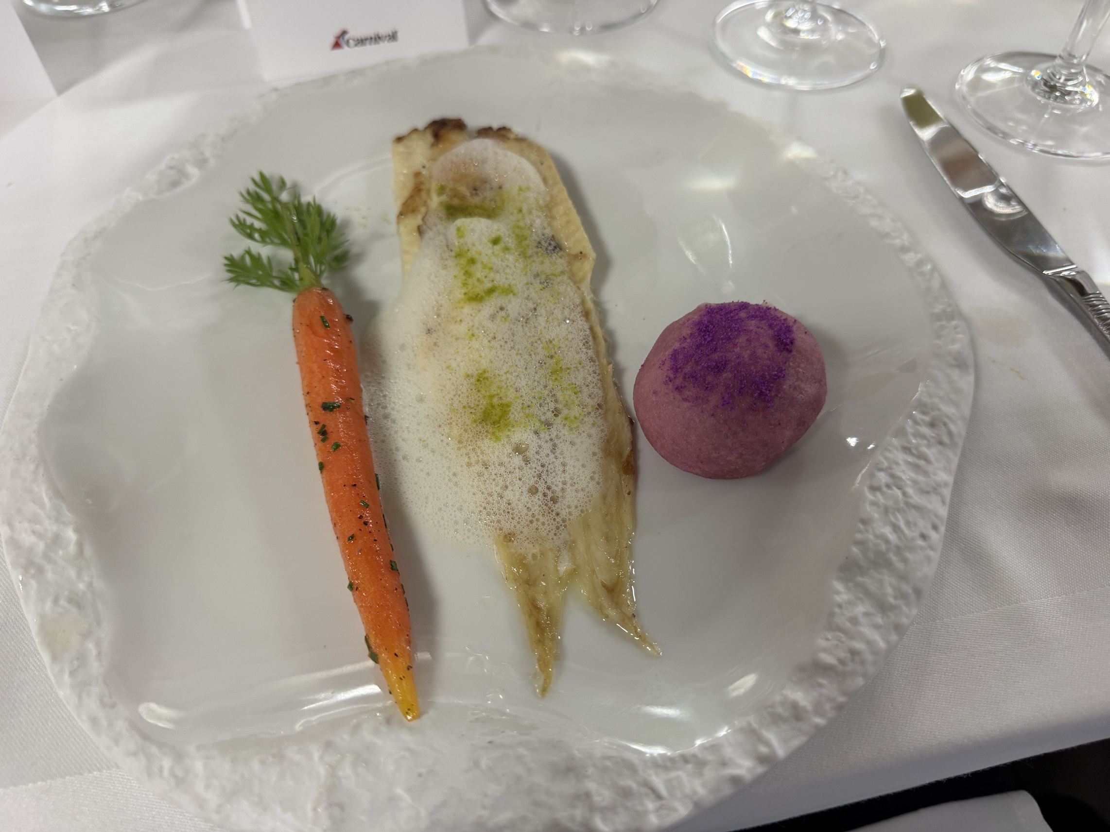 The Dover sole course with crystal potato and heirloom carrot.