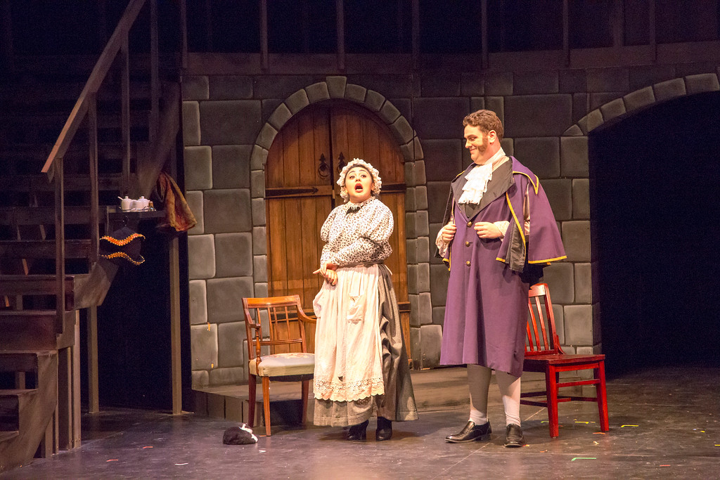 Mr. Bumble approaches Widow Corney, who says, "I Shall Scream".