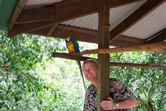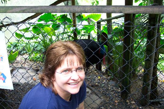 This bird behind Kimberly is a cassowary. The horn-like appendage on