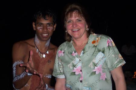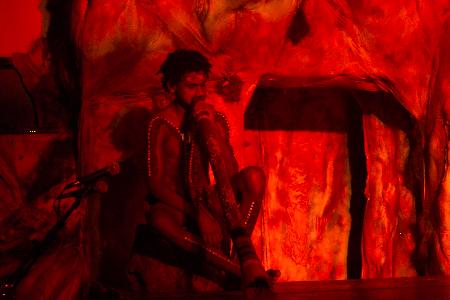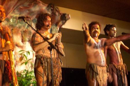 That evening, we go to a traditional feast of the Tjapukai indiginous tribe, where they put on a show of ritual story, song, and dance.