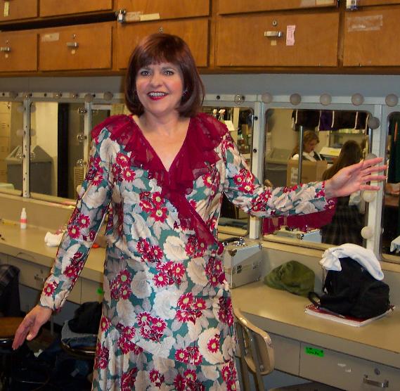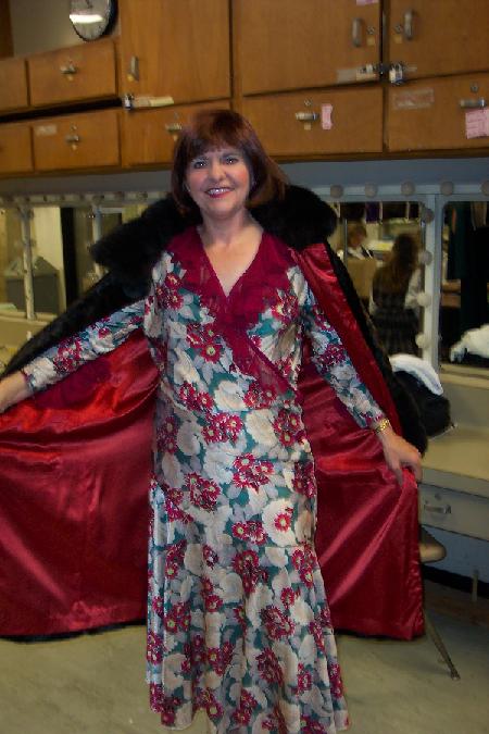 We don't have any shots yet of the actual production, but here are a couple of Kimberly backstage as Mrs. Mortar.