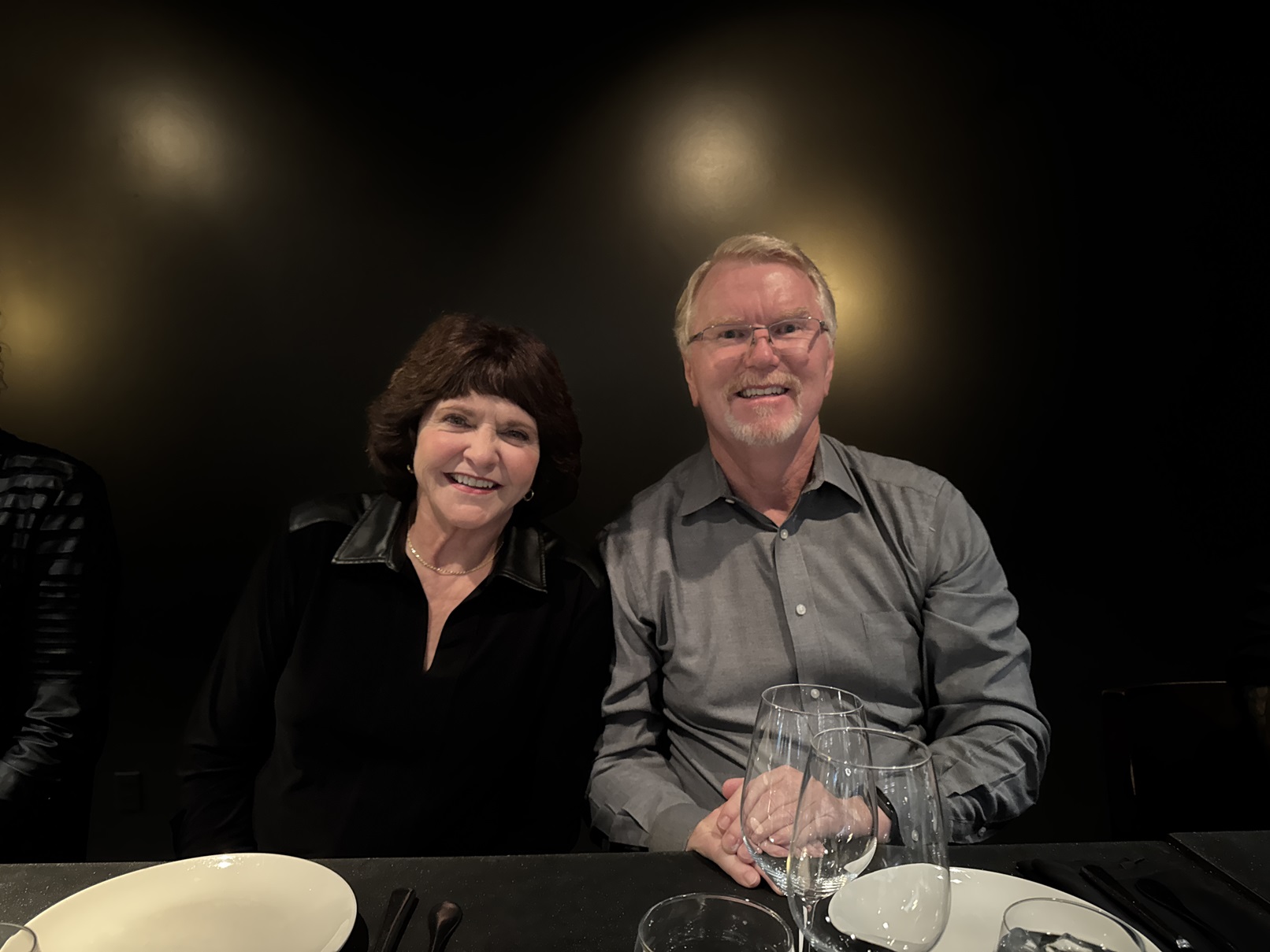 the lovely couple. This is just the wall behind us, but it looks like we're in a studio.