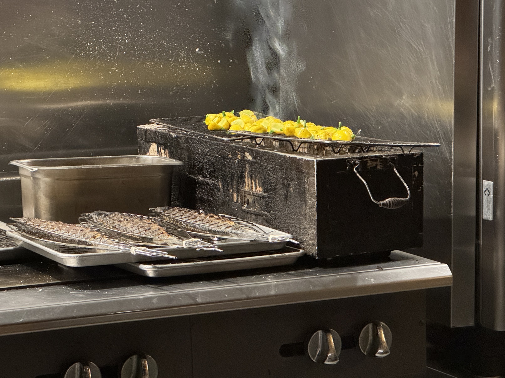 They make great use of an oak-burning shichirin. To the left are the branzino that are resting,