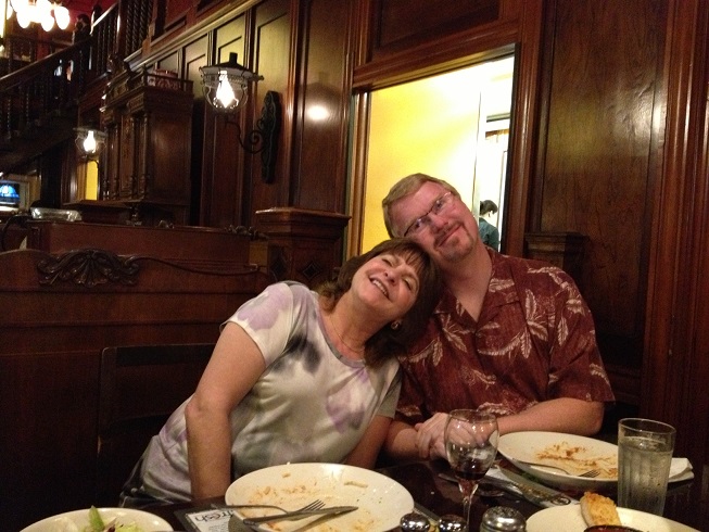 Wade's birthday was held this year at the Olde Spaghetti Factory in Newport Beach. Here's the happy couple.