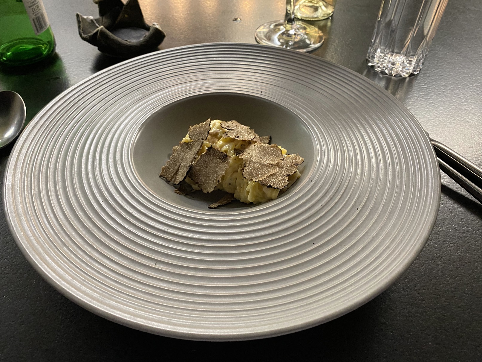 Housemade pasta with black truffle in the sauce, and shaved truffle on top.